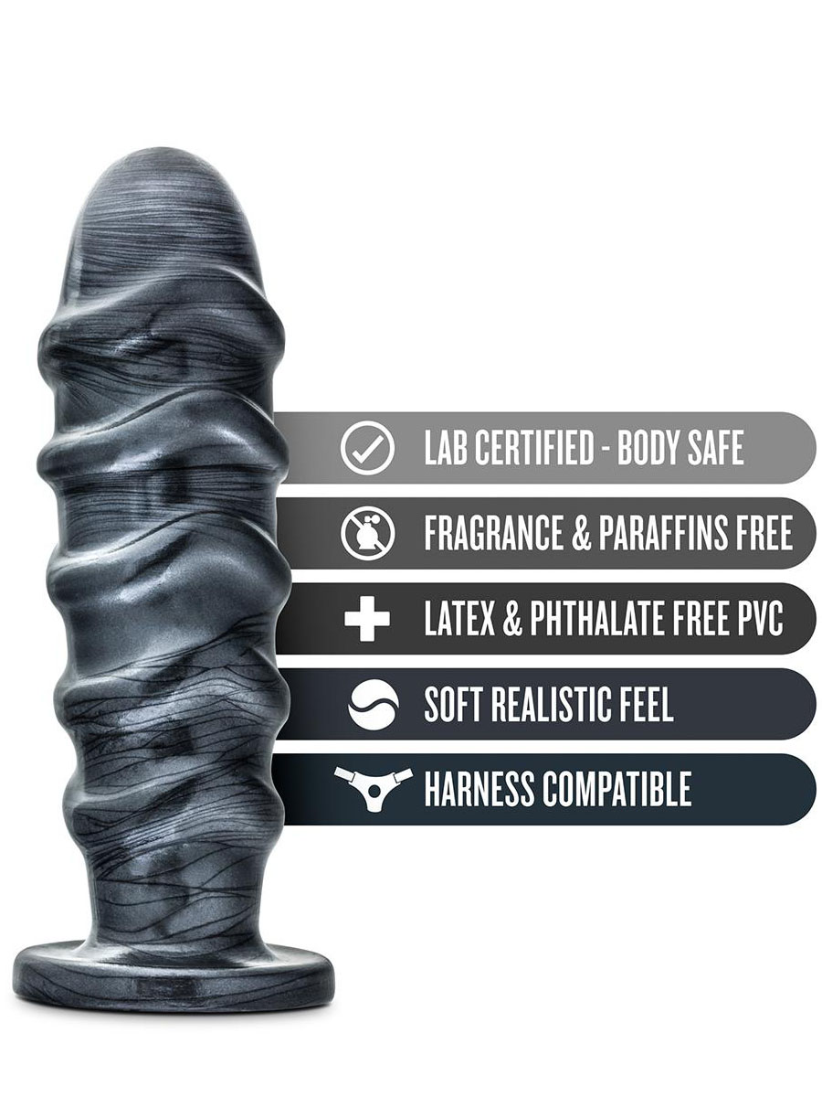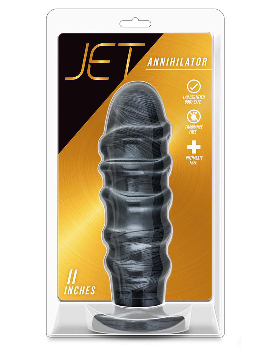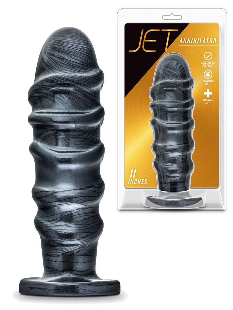Ogroman zastrašujući Anihilator je analni plug profesionalne veličine koji izgleda elegantno i zastrašujuće sa Jet crnom karbonskom metalnom završnom obradom, napravljen od laboratorijski testiranog neporoznog PVC-a, bezbednog za telo. Igrajte jako. Igrajte bezbedno. Ovaj analni plug je za napredne korisnike. Mekan, fleksibilan i njegov suženi oblik omogućava lako i udobno umetanje. Čvrsta osnova vakumske čašice lepi se na bilo koju glatku ravnu površinu i sprečava „prekomerno umetanje“. Operite sapunom i vodom pre i posle svake upotrebe. Osušite čistom suvom krpom. Koristite sa Blush Lock On sistemom za pojaseve i ručke, kao i sličnim sistemima zaključavanja. Suženi oblik lako ulazi i ostaje umetnut. Čvrsta proširena osnova vakuumske čašice sprečava „prekomerno umetanje“ i lepi se na bilo koju glatku ravnu površinu. Ogromna veličina! Materijal bezbedan za telo, bez ftalata i lateksa. Dužina 27,9 cm, a dužina za umetanje 24,1 cm. Širina 7,6 cm.