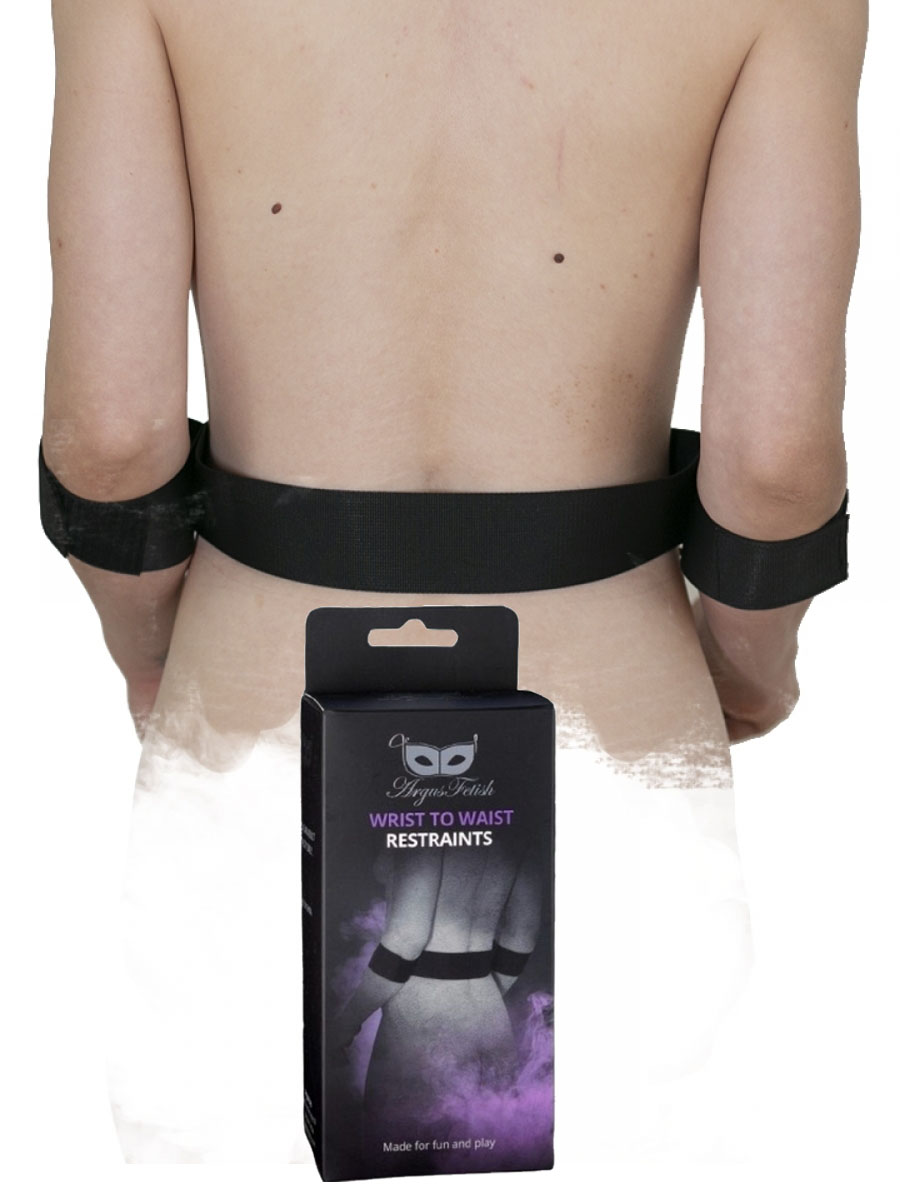 Argus Fetish Wrist to Waist Restraint je jedinstveni set za vezivanje. Napravljen je od izuzetno izdržljivog i kvalitetnog materijala koji omogućava udobnost tokom korišćenja. Jednostavan je za korišćenje i podesiv. Postavlja se oko struka, a lisice su prišivene za kaiš i vezuju se pomoću čičak trake.