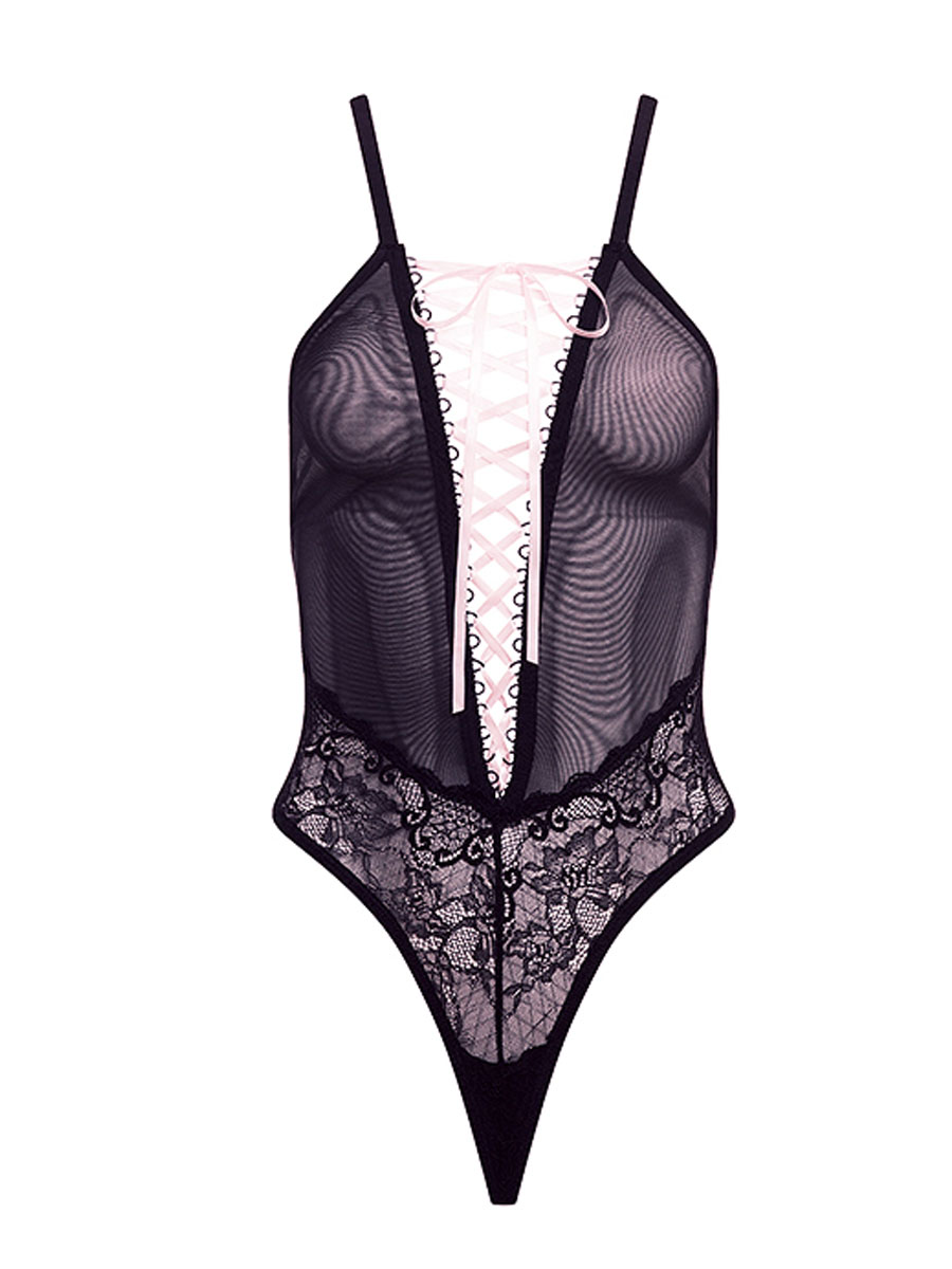 Upadljiva ružičasta satenska traka spaja se sa dubokim crnim mrežastim gornjim delom sa rascepom u ovom uskom gornjem delu koji se završava visoko na kukovima, lako se spuštajući u gaćice u obliku slova V. Klasičan profil ističe grudi i kukove detaljima koji upotpunjuju izgled. Donji veš je upakovan u stilsku crnu kutiju sa karticom na prednjoj strani koja se može ukloniti i pretvoriti kutiju u lepu poklon kutiju. Pored toga, dolazi sa uklonjivom crno-crvenom elastičnom podvezicom za noge koja je ukrašena draguljem u obliku srca i mašnom, što je divan način da poklon kutija bude kompletna! Veličina univerzalna.
