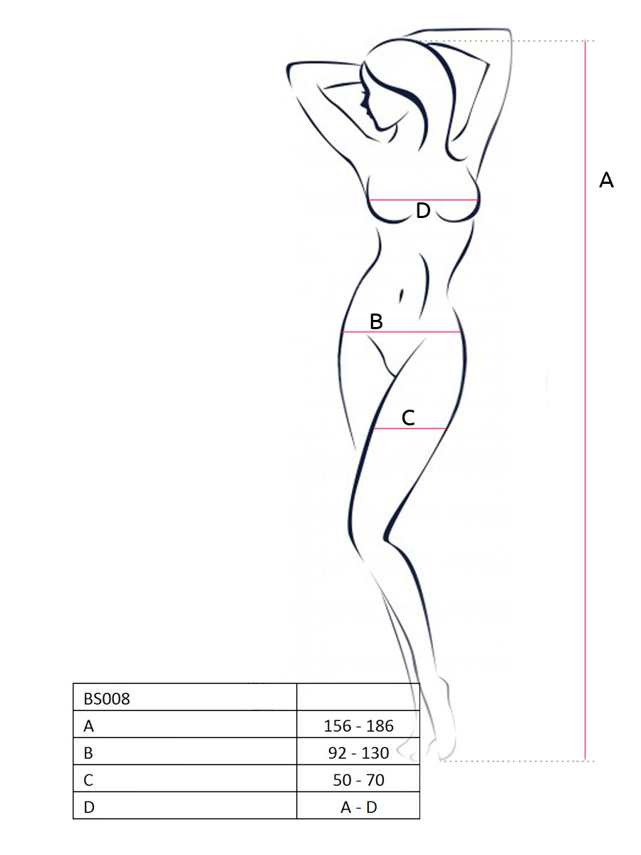 Ovaj visokokvalitetni bodystocking dostupan je u jednoj univerzalnoj veličini i neodoljiva su kombinacija elegancije i zavodljivosti,. Izrađen je od visokokvalitetnih materijala – 80% poliamid i 20% elastina, obezbeđujući udobnost i rastegljivost koja omogućava da se savršeno prilagodi vašem telu. Univerzalna veličina S-L garantuje da će se savršeno pristajati na svaku figuru.