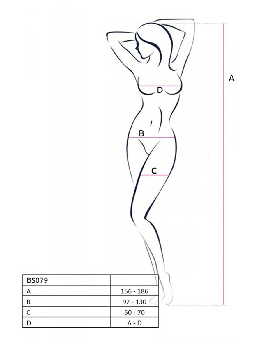 Ovaj visokokvalitetni bodystocking dostupan je u jednoj univerzalnoj veličini. Izrađen je od visokokvalitetnih materijala – 80% poliamid i 20% elastina, obezbeđujući udobnost i rastegljivost koja omogućava da se savršeno prilagodi vašem telu. Univerzalna veličina S-L garantuje da će se savršeno pristajati na svaku figuru.