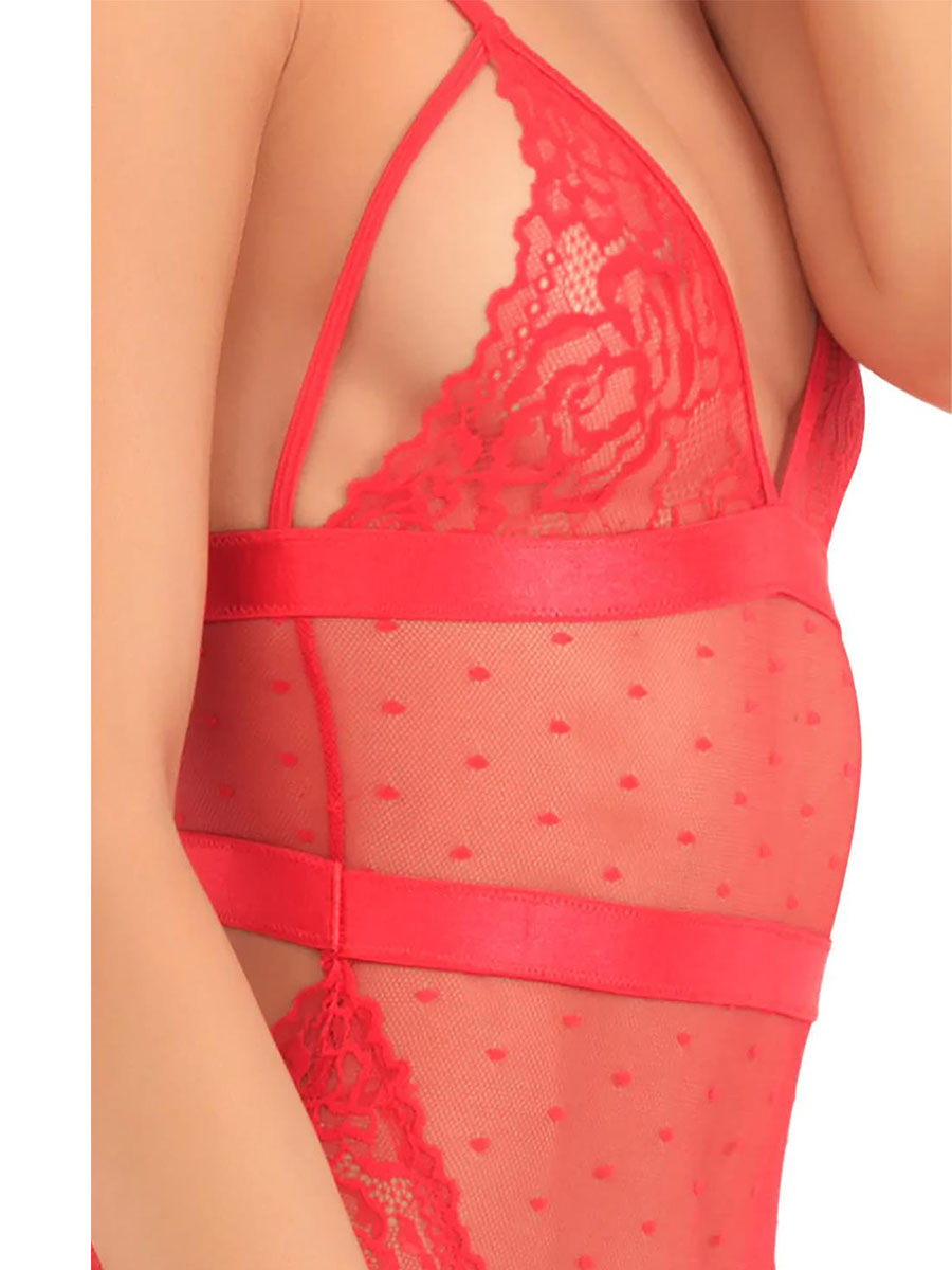 Prelepi čipkani dizajn dodaje klasu i estetsku notu vašoj figuri dok providni materijal mami na zavodljiv dodir. Kombinacija čipke I tila, sa ukrštenim detaljima savršeno ističu vašu pozadinu i otkriva više nego sto sakriva. Materijal je 90% najlon i 10% spandeks za udobno prianjanje. Veličina M/L