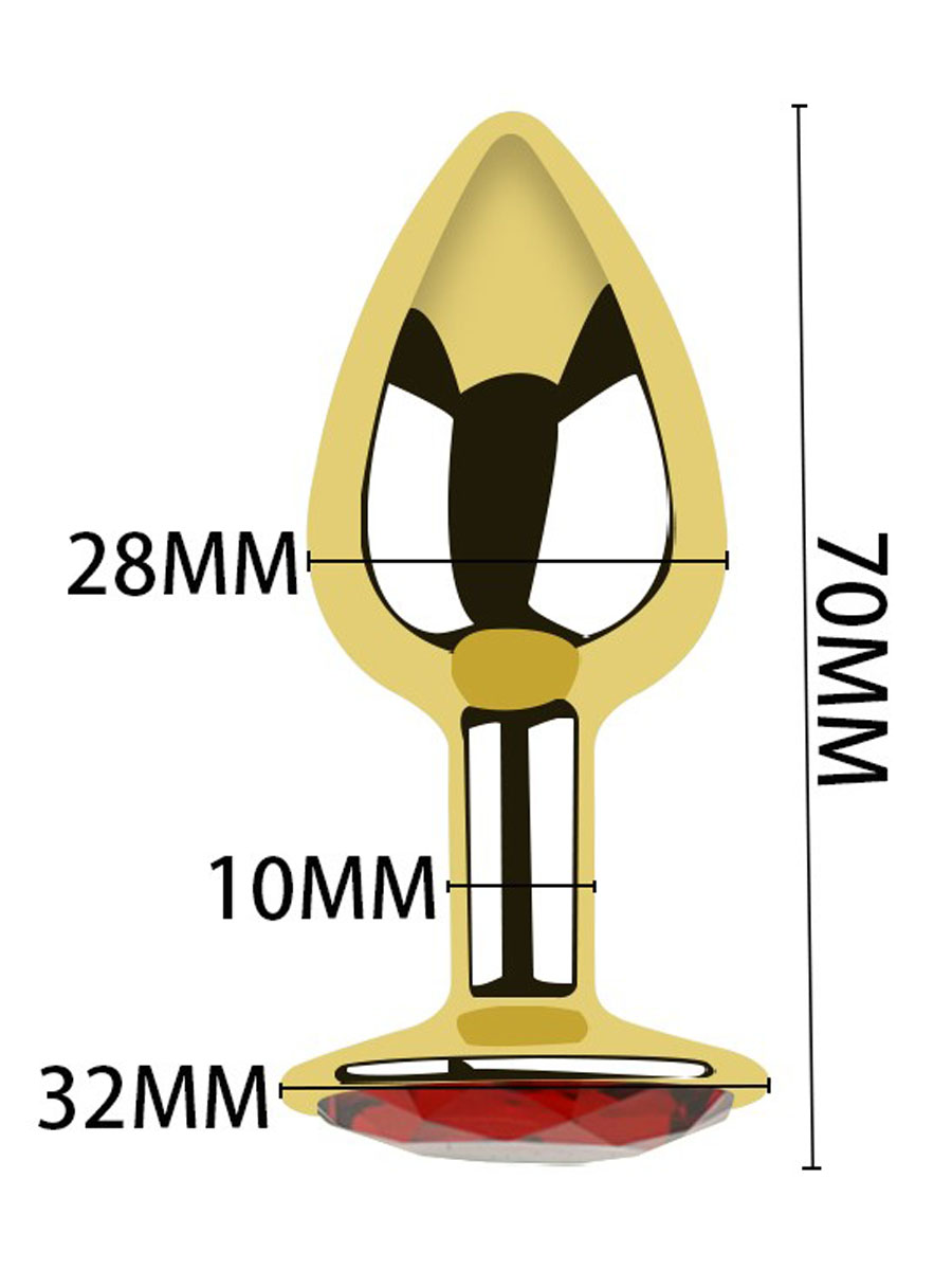 Metalni butt plug napravljen od metala (bez nikla) sa kristalom crvene boje na dnu je ergonomskog dizajna i idealan kako za početnike tako i za one iskusnije. Zbog svog konusnog oblika će uvek stajati na mestu. Radi lakše penetracije i lepšeg iskustva preporučujemo upotrebu lubrikanta na bazi vode koji takodje možete naći kod nas u prodaji. Nakon upotrebe je bitno samo isprati ga sa toplom vodom i sapunicom.