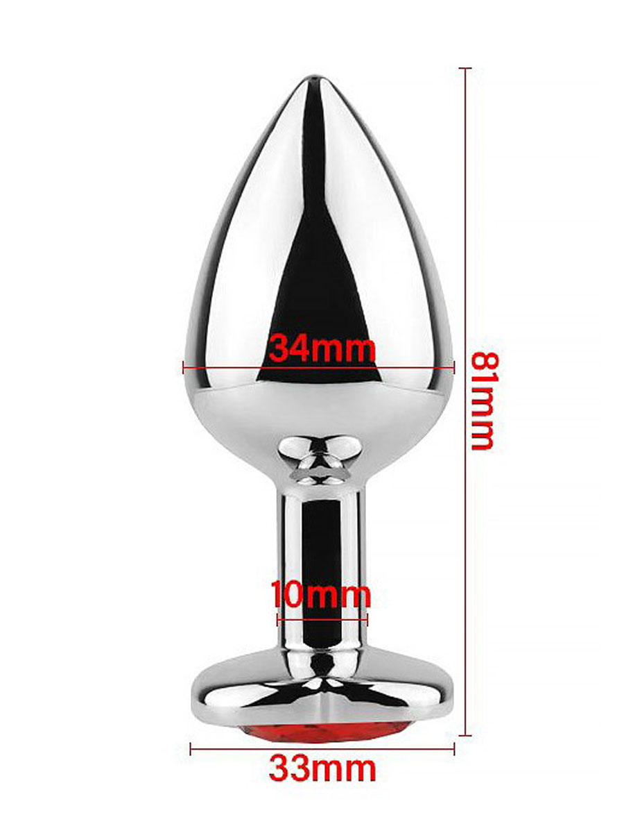 Metalni butt plug napravljen od metala (bez nikla) sa kristalom na dnu u obliku srca, je ergonomskog dizajna i idealan kako za početnike tako i za one iskusnije. Zbog svog konusnog oblika će uvek stajati na mestu. Radi lakše penetracije i lepšeg iskustva preporučujemo upotrebu lubrikanta na bazi vode koji takodje možete naći kod nas u prodaji. Nakon upotrebe je bitno samo isprati ga sa toplom vodom i sapunicom.
