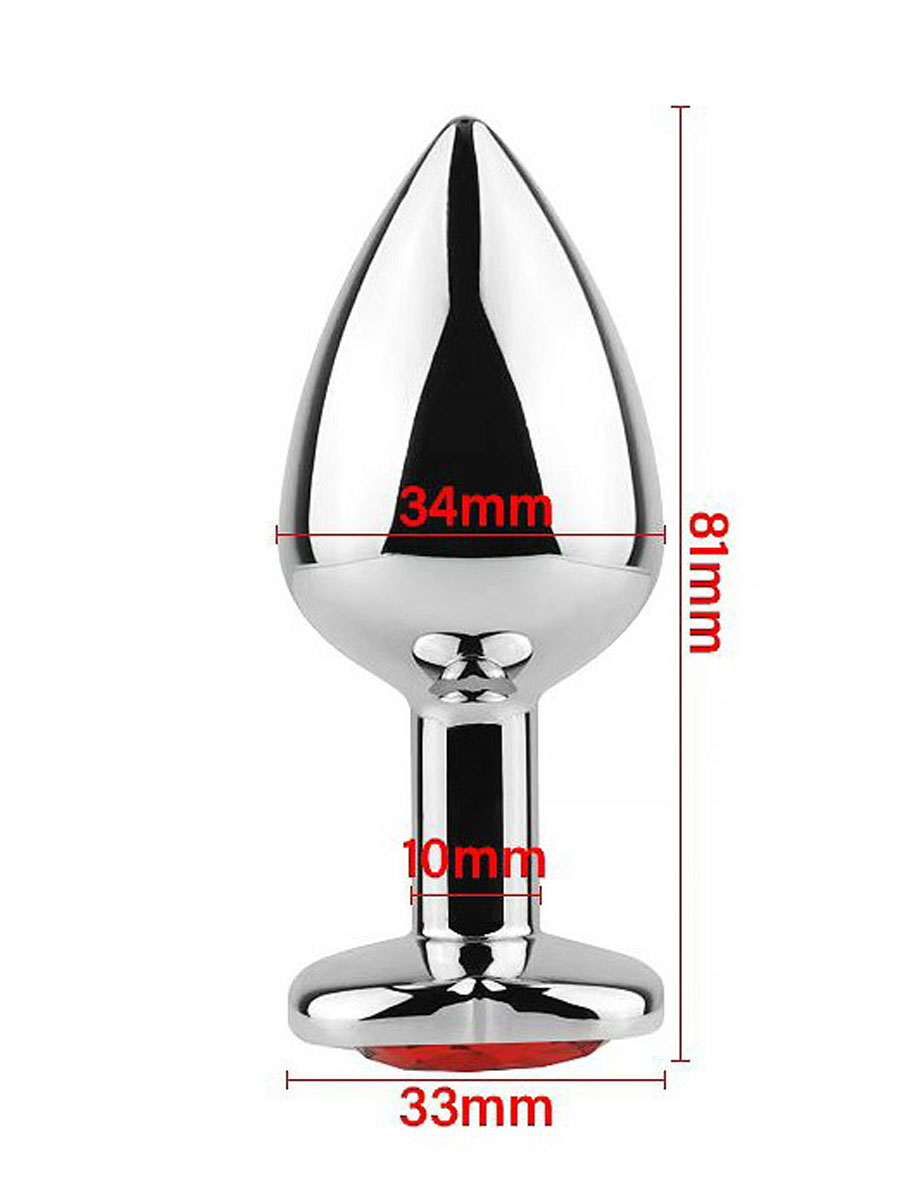 Metalni butt plug napravljen od metala (bez nikla) sa kristalom na dnu u obliku srca, je ergonomskog dizajna i idealan kako za početnike tako i za one iskusnije. Zbog svog konusnog oblika će uvek stajati na mestu. Radi lakše penetracije i lepšeg iskustva preporučujemo upotrebu lubrikanta na bazi vode koji takodje možete naći kod nas u prodaji. Nakon upotrebe je bitno samo isprati ga sa toplom vodom i sapunicom.