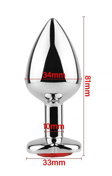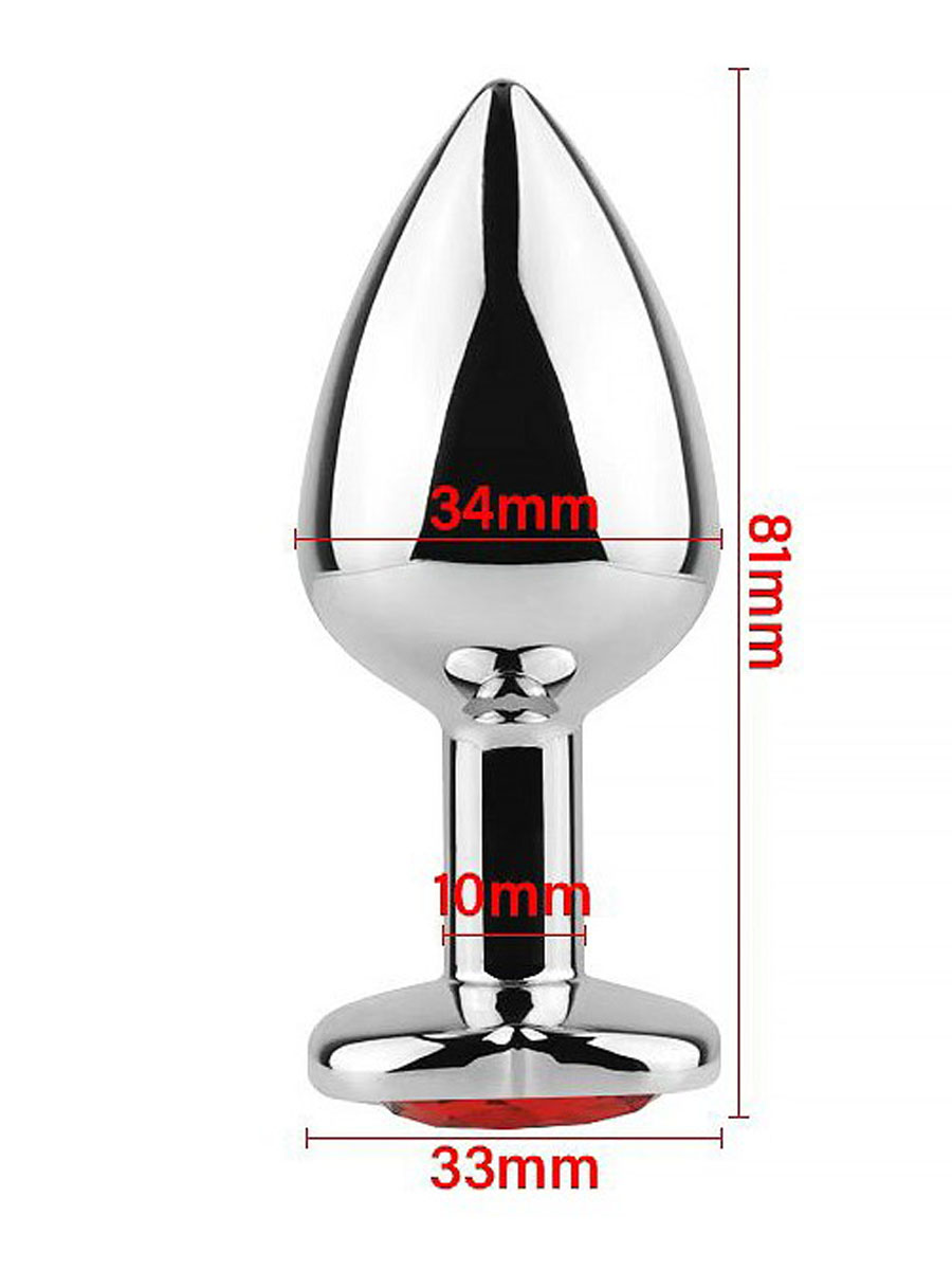 Metalni butt plug napravljen od metala (bez nikla) sa kristalom na dnu u obliku srca, je ergonomskog dizajna i idealan kako za početnike tako i za one iskusnije. Zbog svog konusnog oblika će uvek stajati na mestu. Radi lakše penetracije i lepšeg iskustva preporučujemo upotrebu lubrikanta na bazi vode koji takodje možete naći kod nas u prodaji. Nakon upotrebe je bitno samo isprati ga sa toplom vodom i sapunicom.