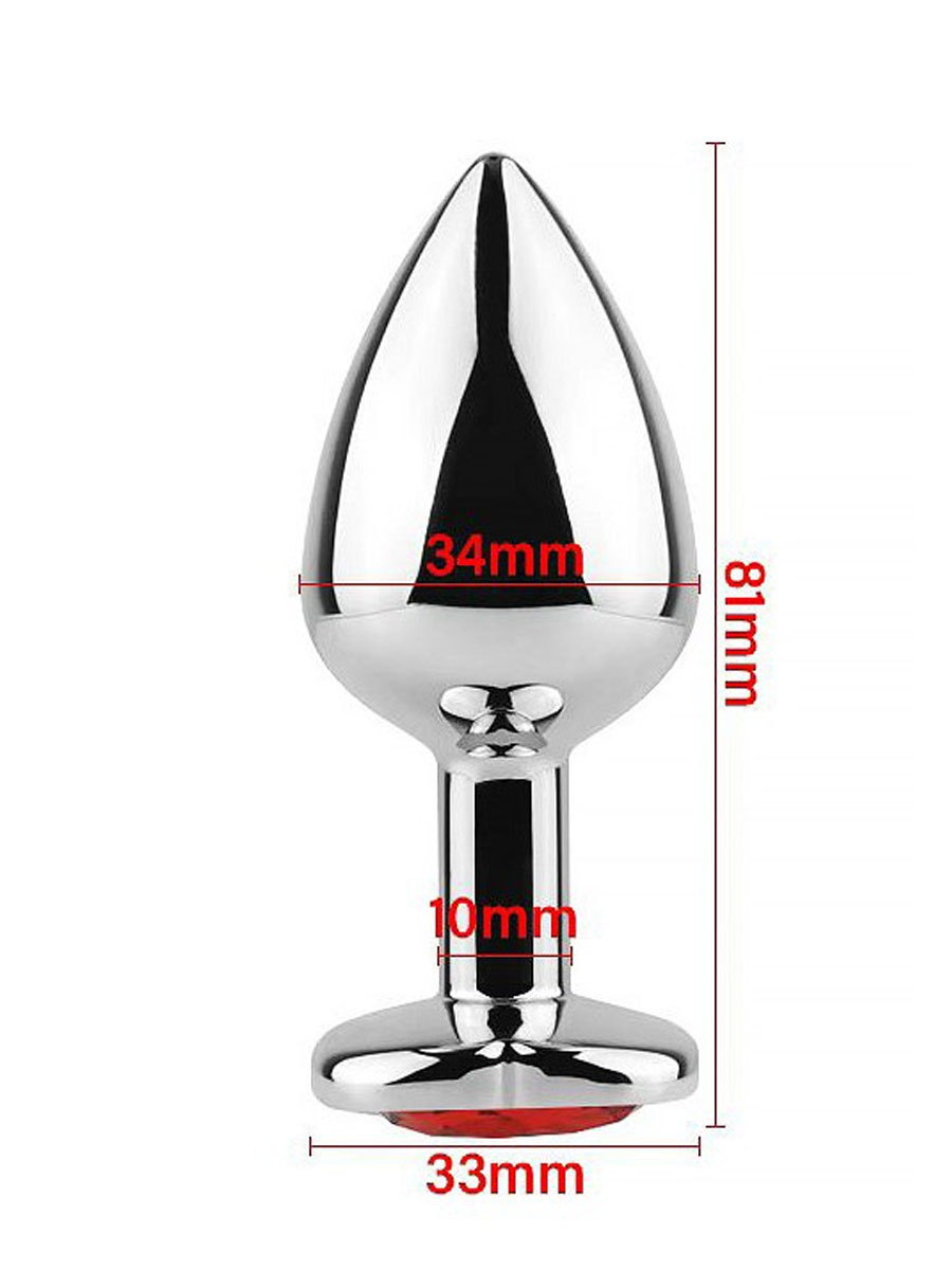 Metalni butt plug napravljen od metala (bez nikla) sa kristalom na dnu u obliku srca, je ergonomskog dizajna i idealan kako za početnike tako i za one iskusnije. Zbog svog konusnog oblika će uvek stajati na mestu. Radi lakše penetracije i lepšeg iskustva preporučujemo upotrebu lubrikanta na bazi vode koji takodje možete naći kod nas u prodaji. Nakon upotrebe je bitno samo isprati ga sa toplom vodom i sapunicom.