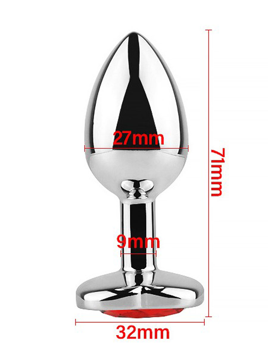 Metalni butt plug napravljen od metala (bez nikla) sa kristalom na dnu u obliku srca, je ergonomskog dizajna i idealan kako za početnike tako i za one iskusnije. Zbog svog konusnog oblika će uvek stajati na mestu. Radi lakše penetracije i lepšeg iskustva preporučujemo upotrebu lubrikanta na bazi vode koji takodje možete naći kod nas u prodaji. Nakon upotrebe je bitno samo isprati ga sa toplom vodom i sapunicom.