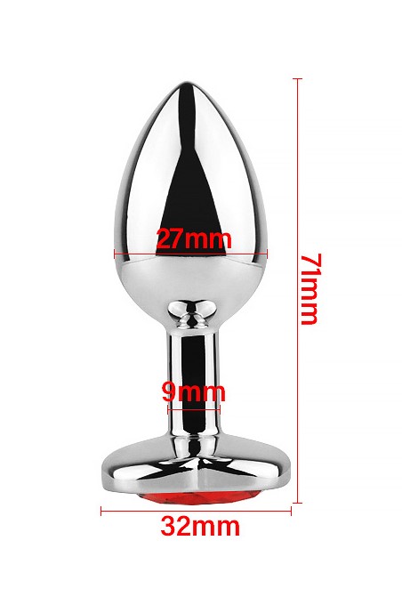 Metalni butt plug napravljen od metala (bez nikla) sa kristalom na dnu u obliku srca, je ergonomskog dizajna i idealan kako za početnike tako i za one iskusnije. Zbog svog konusnog oblika će uvek stajati na mestu. Radi lakše penetracije i lepšeg iskustva preporučujemo upotrebu lubrikanta na bazi vode koji takodje možete naći kod nas u prodaji. Nakon upotrebe je bitno samo isprati ga sa toplom vodom i sapunicom.