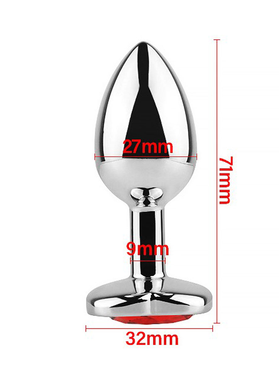 Metalni butt plug napravljen od metala (bez nikla) sa kristalom na dnu u obliku srca, je ergonomskog dizajna i idealan kako za početnike tako i za one iskusnije. Zbog svog konusnog oblika će uvek stajati na mestu. Radi lakše penetracije i lepšeg iskustva preporučujemo upotrebu lubrikanta na bazi vode koji takodje možete naći kod nas u prodaji. Nakon upotrebe je bitno samo isprati ga sa toplom vodom i sapunicom.