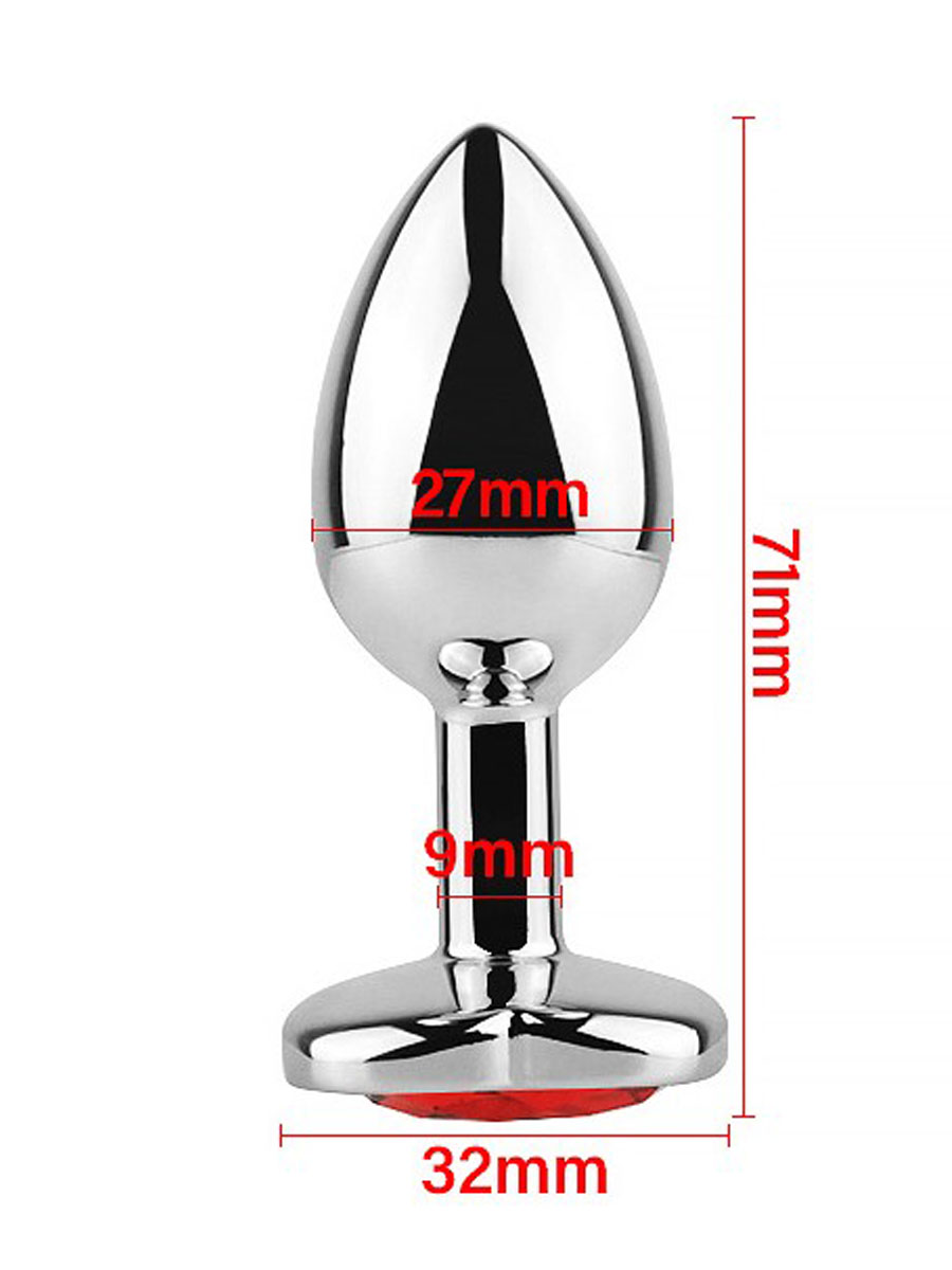Metalni butt plug napravljen od metala (bez nikla) sa kristalom na dnu u obliku srca, je ergonomskog dizajna i idealan kako za početnike tako i za one iskusnije. Zbog svog konusnog oblika će uvek stajati na mestu. Radi lakše penetracije i lepšeg iskustva preporučujemo upotrebu lubrikanta na bazi vode koji takodje možete naći kod nas u prodaji. Nakon upotrebe je bitno samo isprati ga sa toplom vodom i sapunicom.