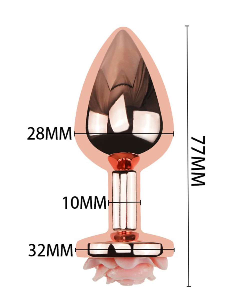 Metalni butt plug napravljen od metala (bez nikla) sa kristalom pink boje u obliku ruže na dnu je ergonomskog dizajna i idealan kako za početnike tako i za one iskusnije. Zbog svog konusnog oblika će uvek stajati na mestu. Radi lakše penetracije i lepšeg iskustva preporučujemo upotrebu lubrikanta na bazi vode koji takodje možete naći kod nas u prodaji. Nakon upotrebe je bitno samo isprati ga sa toplom vodom i sapunicom.