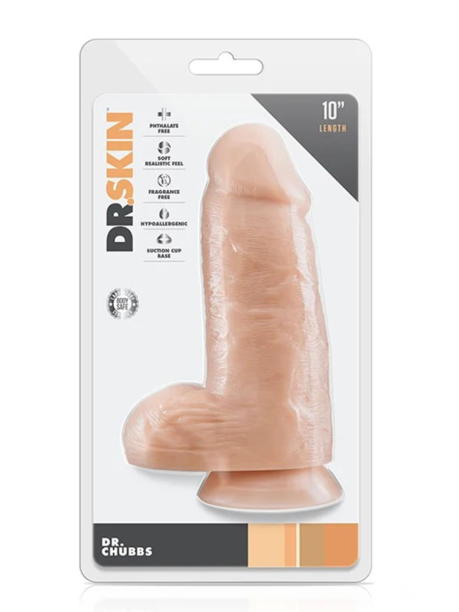 Doktor je tu! Dr. Skin Dr. Chubbs vam nudi nove nivoe obima. Sa širinom od 8,2 cm i dužinom za umetanje od 17,1 cm, Dr. Chubbs je idealan za svakoga ko želi da se oseća rastegnuto do svojih granica. Pruža mekan, realističan osećaj i teksturu poput pravog penisa za iskustvo bolje nego stvarno. Zalepite ovu igračku na bilo koju glatku, ravnu površinu da biste iskoristili njenu jaku vakuumsku čašicu. Laboratorijski testirani neporozni PVC Dr. Chubbs je bezbedan za telo i lak za čišćenje: samo operite blagim sapunom i vodom, a zatim ostavite da se osuši na vazduhu.