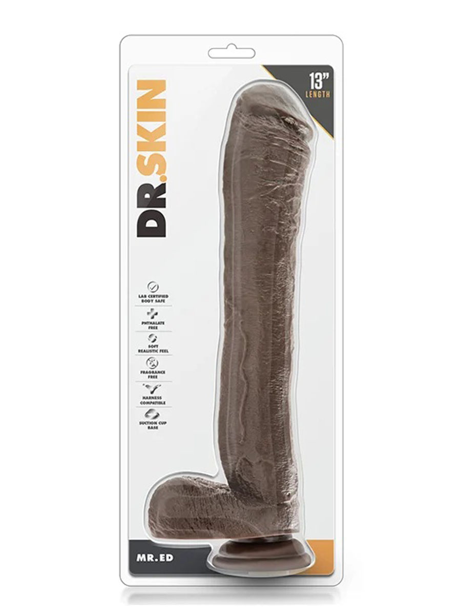 Priuštite sebi nezaboravne trenutke sa dildom Dr.Skin Mr.Ed, koji se ističe svojom veličinom, egzotičnom bojom, i izuzetno je seksi. Proizvod je napravljen od PVC-a, baršunastog i prijatnog materijala na dodir, realističnog dizajna, sa dobro definisanom glavom, istaknutim venama i uzbudljivim testisima. Ukupne dužine 33cm i prečnika 5cm. Održavanje je vodom i sapunom.