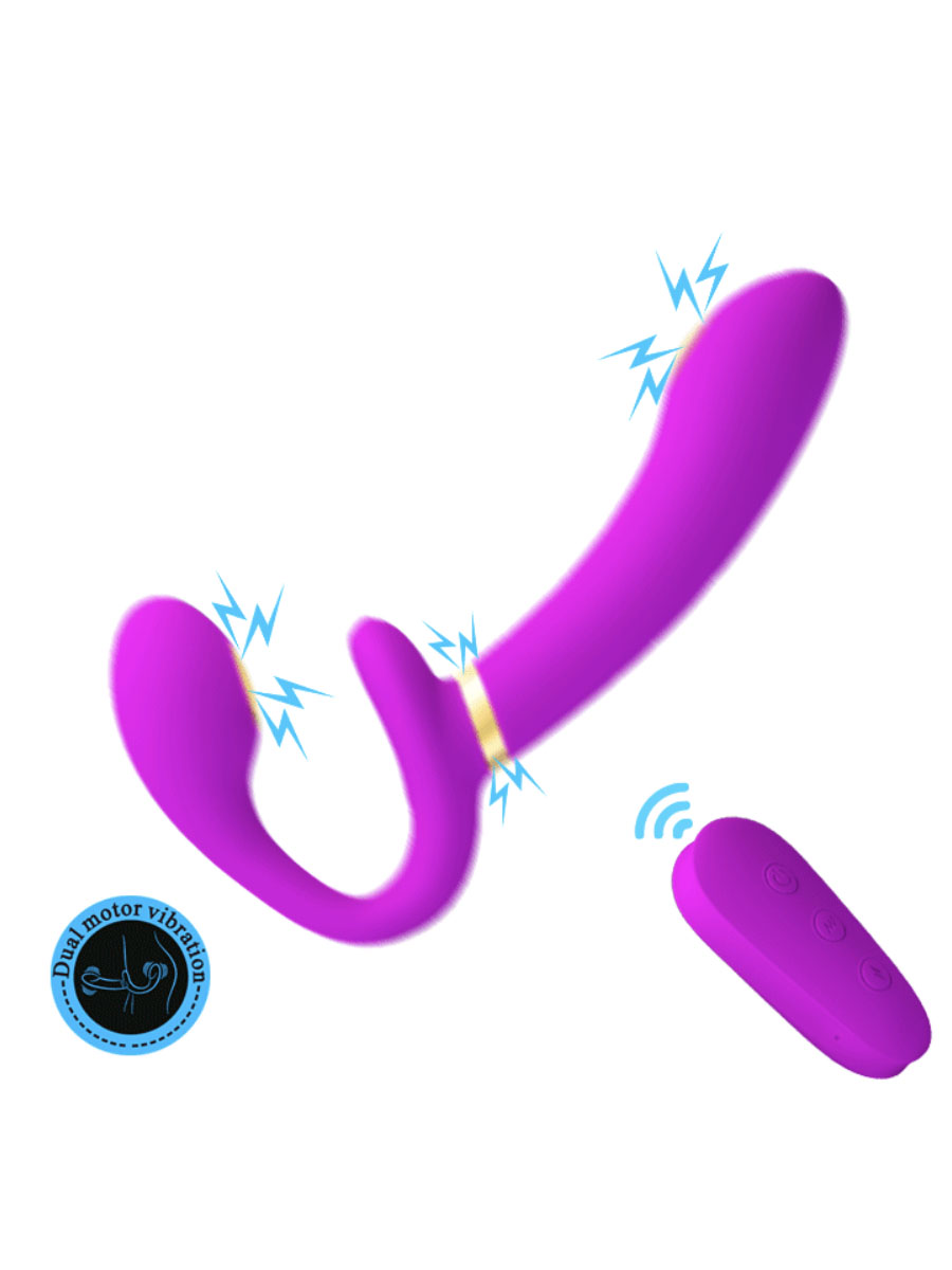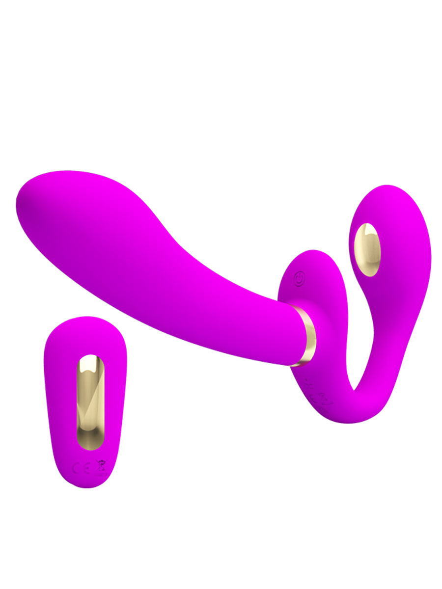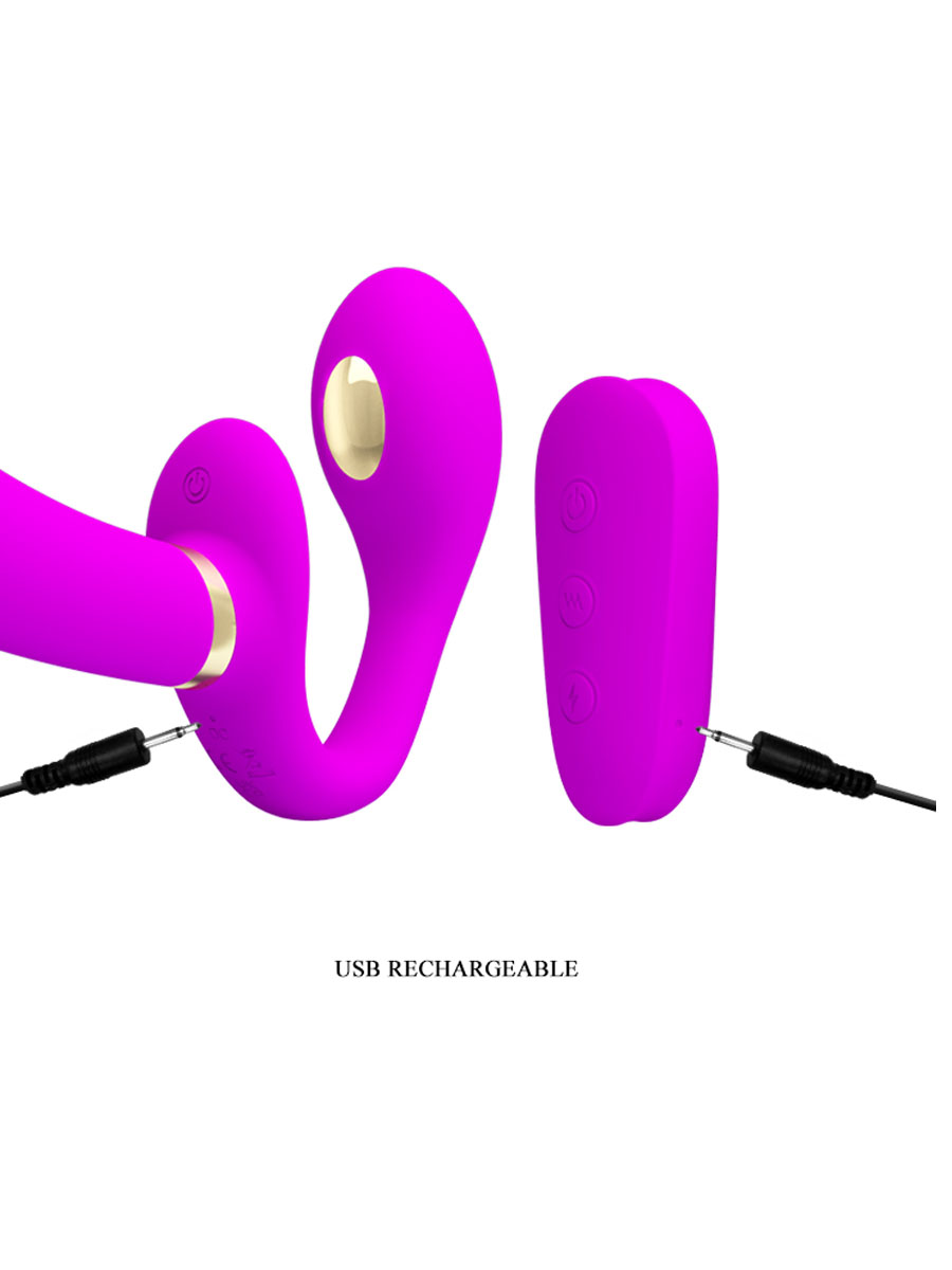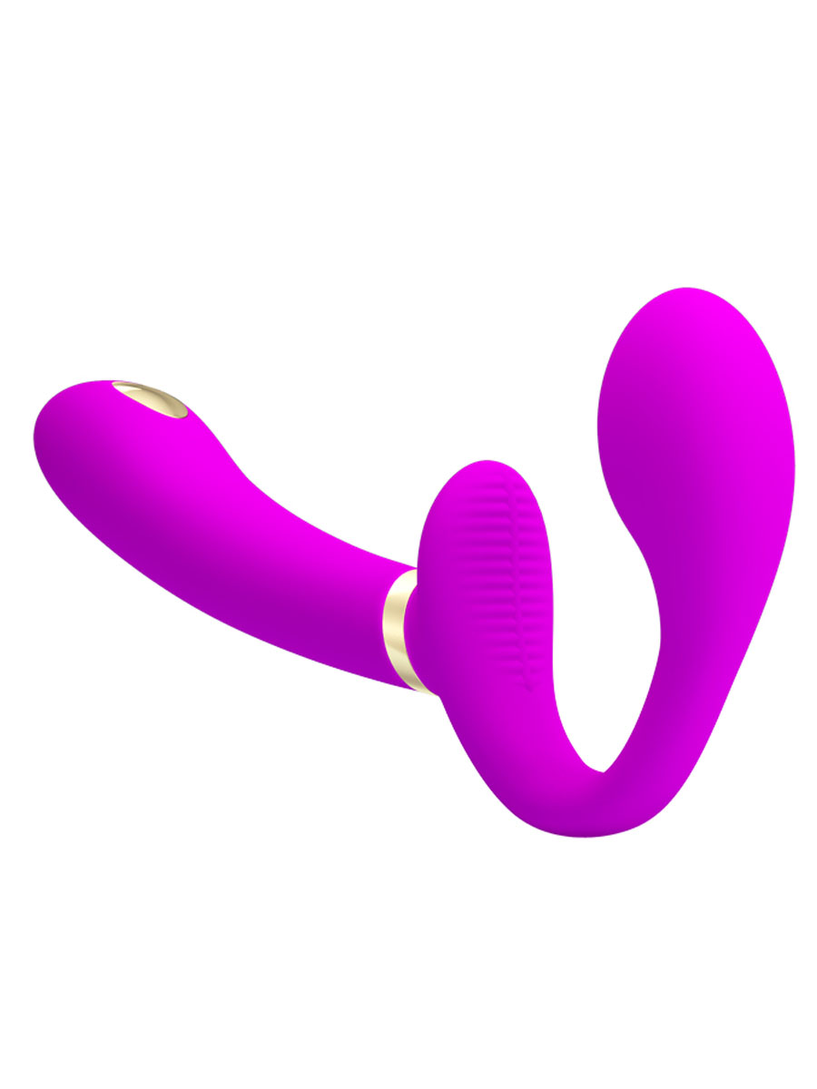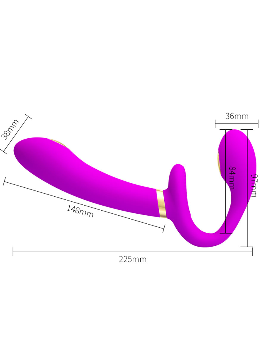 Predstavljamo neverovatan model strap on-a sa vibracijom. Izrađen je od visokokvalitetnog materijala, vrhunskog ABS i silikona, čime je sigurnost i udobnost zagarantovana pri upotrebi. Proizvod poseduje dva masažera, jedan unutrašnji, koji na izvanredan način stimuliše G tačku i jedan spoljašnji, za stimulaciju partnera. Ovaj prelepi strap-on bez pojasa, koji ima 12 režima vibracije i 3 režima elektrostimulacije, pruža spontanije, neprekidno iskustvo. Njegovi obli delovi sa elementima vibracije i elektrostimulacije savršeno se uklapaju u vaginu i nežno masiraju pravo mesto tokom penetracije. Bez obzira da li se spremate da zadovoljite svog muškarca senzualnom seansom peginga ili planirate intenzivan susret devojke sa devojkom, zadovoljstvo je više nego zagarantovano. Uz proizvod, dobija se USB punjač,a punjenje se preporučuje preko laptopa. Igra se može podići na viši nivo uz pomoć daljinske kontrole, koja će upotpuniti celokupan doživljaj. Uz ovaj proizvod, preporučujemo upotrebu lubrikanta na vodenoj bazi, radi prijatnije penetracije. Kada je reč o održavanju, koristiti mlaku vodu i sapunicu.