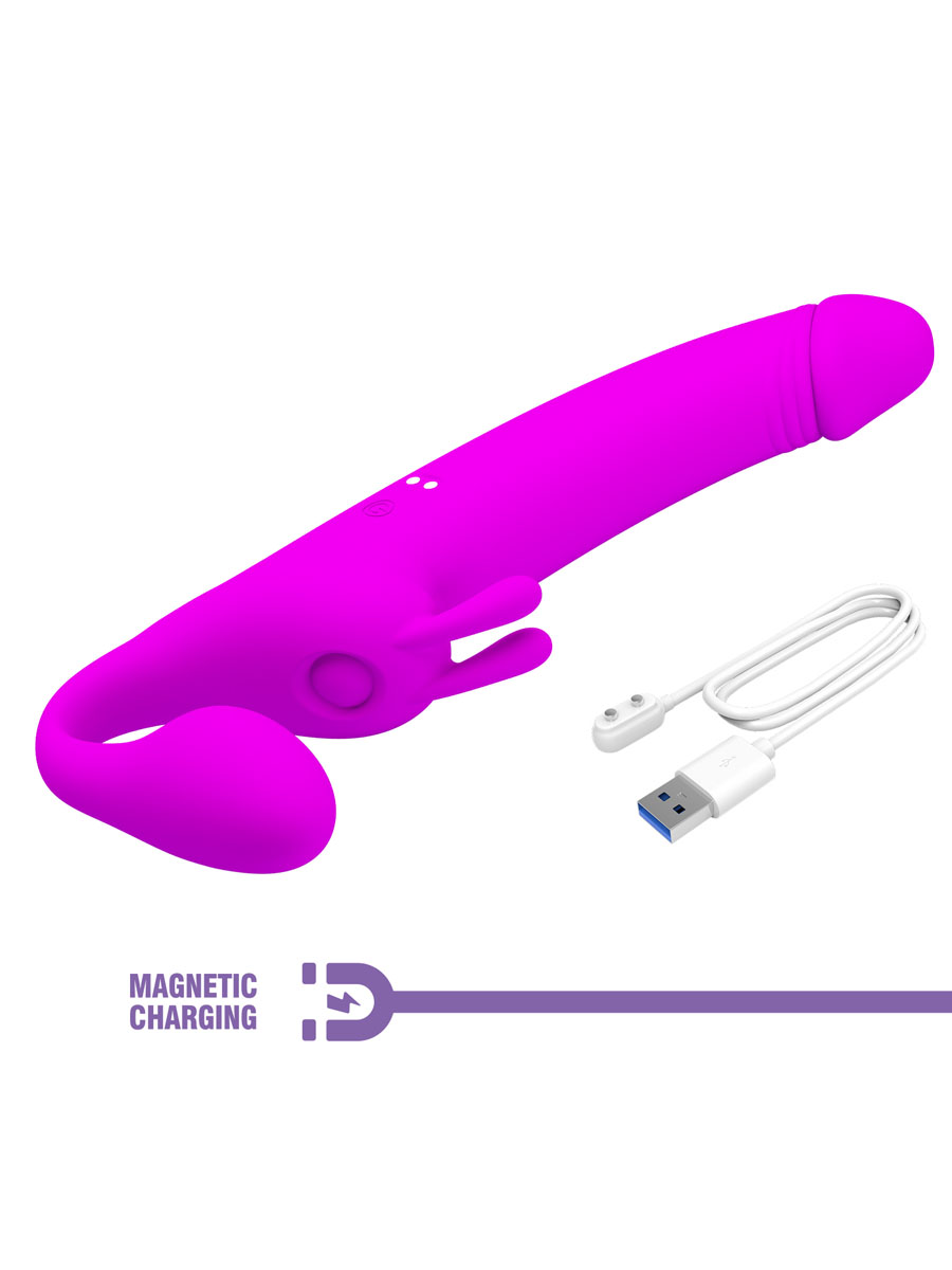 Ovo je vrhunski proizvod koji donosi inovativan pristup seksualnoj igri. Ovaj strap-on bez kaiševa omogućava vam da se oslobodite klasičnih ograničenja i uživate u potpunoj slobodi pokreta. Savršen je za sve koji žele da istraže nove dimenzije intimnosti sa ljubavnim partnerom. Izrađen od visokokvalitetnog silikona, koji je prijatan na dodir i jednostavan za održavanje. Njegova ljubičasta boja dodaje dašak sofisticiranosti i privlačnosti. Dizajniran je da istovremeno stimuliše oba partnera. Snažni motori smešteni oba dela vibratora nude čak 10 različitih funkcija vibracija i 10 funkcija tapkanja. Dužina celog proizvoda iznosi 28,3 cm, dok penetrirajući deo meri 16,6 cm, a prečnik u najširem delu je 4 cm. Strap on se puni preko USB kabla koji se dobije u pakovanju. Preporučuje se upotreba sa lubrikantom na bazi vode.Održavanje antibakterijskim sapunom i toplom vodom.
