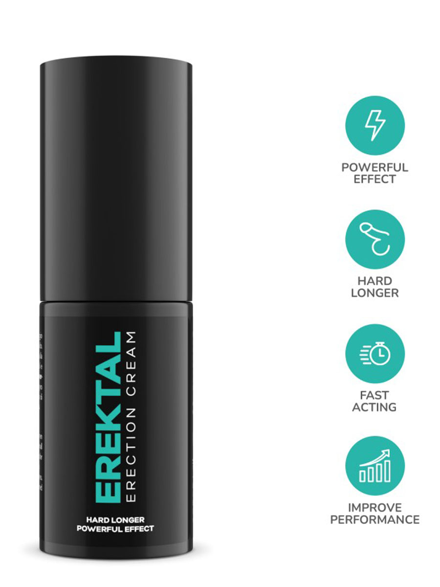 Erektal je super aktivna krema sa fantastičnim svojstvima koja je idealna za masažu muških intimnih delova. Nudi trenutni stimulativni efekat koji reaktivira cirkulaciju i smanjuje umor podržavajući erekciju penisa. Njegova formula sa prirodnim ekstraktom znači da ne zahteva dugotrajnu masažu i nema kontraindikacije. Zahvaljujući svojim aktivnim sastojcima, Erektal stimuliše protok krvi u muškom genitalnom području, povećavajući snagu i energiju. Njegova formula na bazi prirodnih ekstrakata garantuje trenutni efekat za jednostavnu i brzu upotrebu, bez negativnih neželjenih efekata. OPREZ: Može izazvati blago crvenilo. Ne koristiti ako imate oštećenu ili iritiranu kožu.