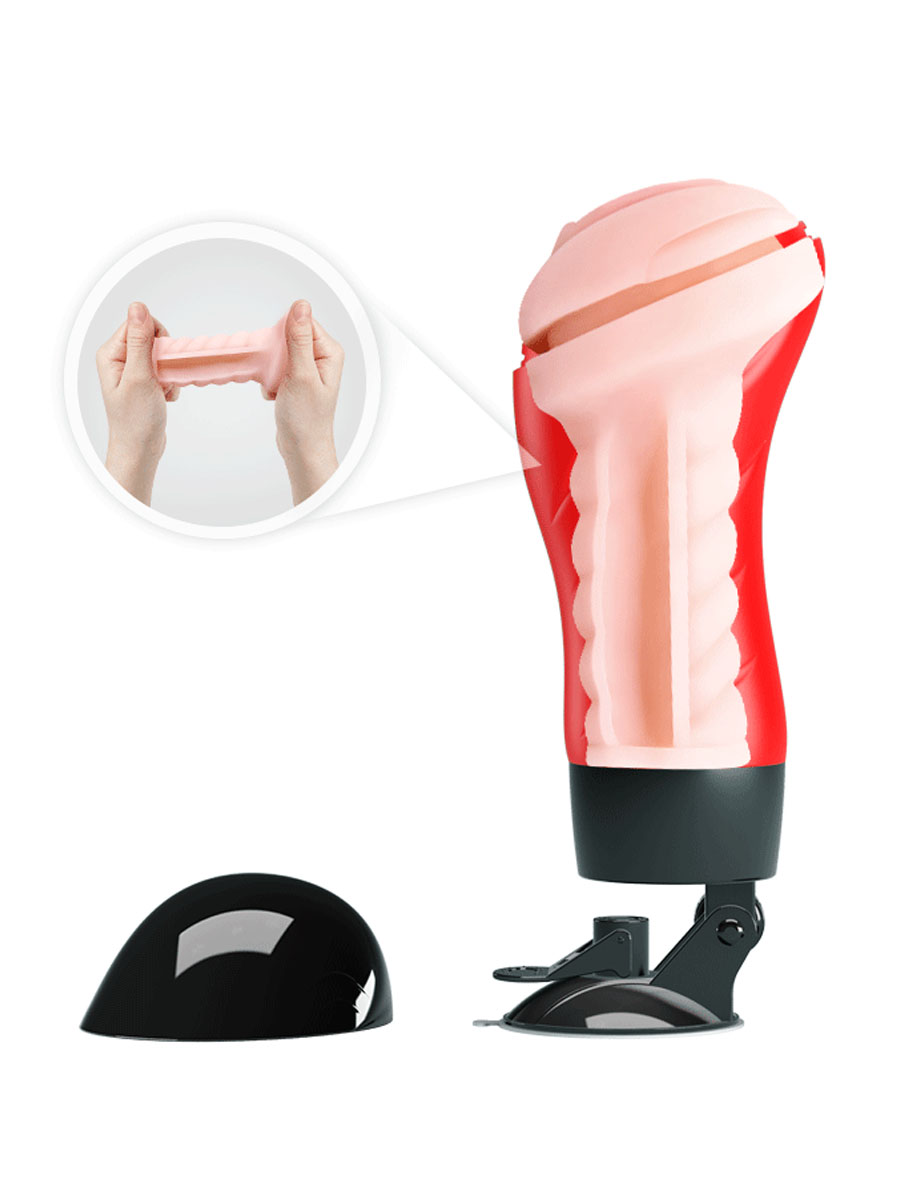 Predstavljamo ovaj realistični masturbator koji imitira vaginu, i dolazi sa čak 12 vrsta vibracije. Zahvaljujući njemu, brzo ćete se preneti u svet ručno kontrolisanog zadovoljstva, iz kojeg nećete želeti da se vratite. Uređaj ima vakumsko postolje koja se može rotirati pod uglom. Može se pričvrstiti na bilo koju glatku površinu. Unutrašnjost čvrsto pokriva penis celom dužinom i napravljena je od izuzetno prijatnog na dodir TPR/ABS materijala, koji imitira ljudsku kožu. Za veću udobnost upotrebe preporučuje se upotreba sa lubrikantom. Lubrikanti na bazi vode su najbezbedniji za osetljive materijale. Masturbator se može čistiti vodom i blagom sapunicom. Ukupna duzina, sa sve postoljem iznosi 28 cm, a širina 10 cm. Pokreću ga 2*AAA baterije.