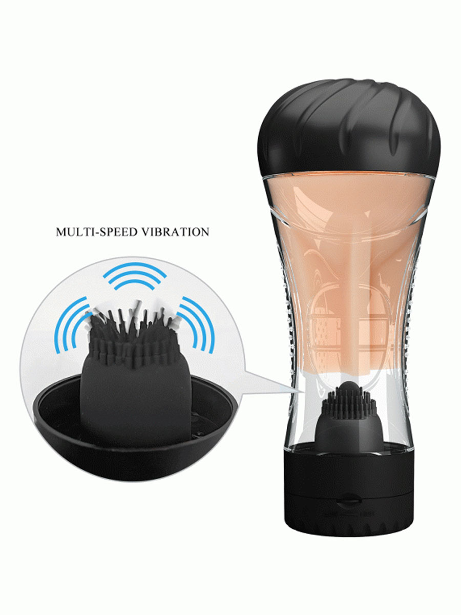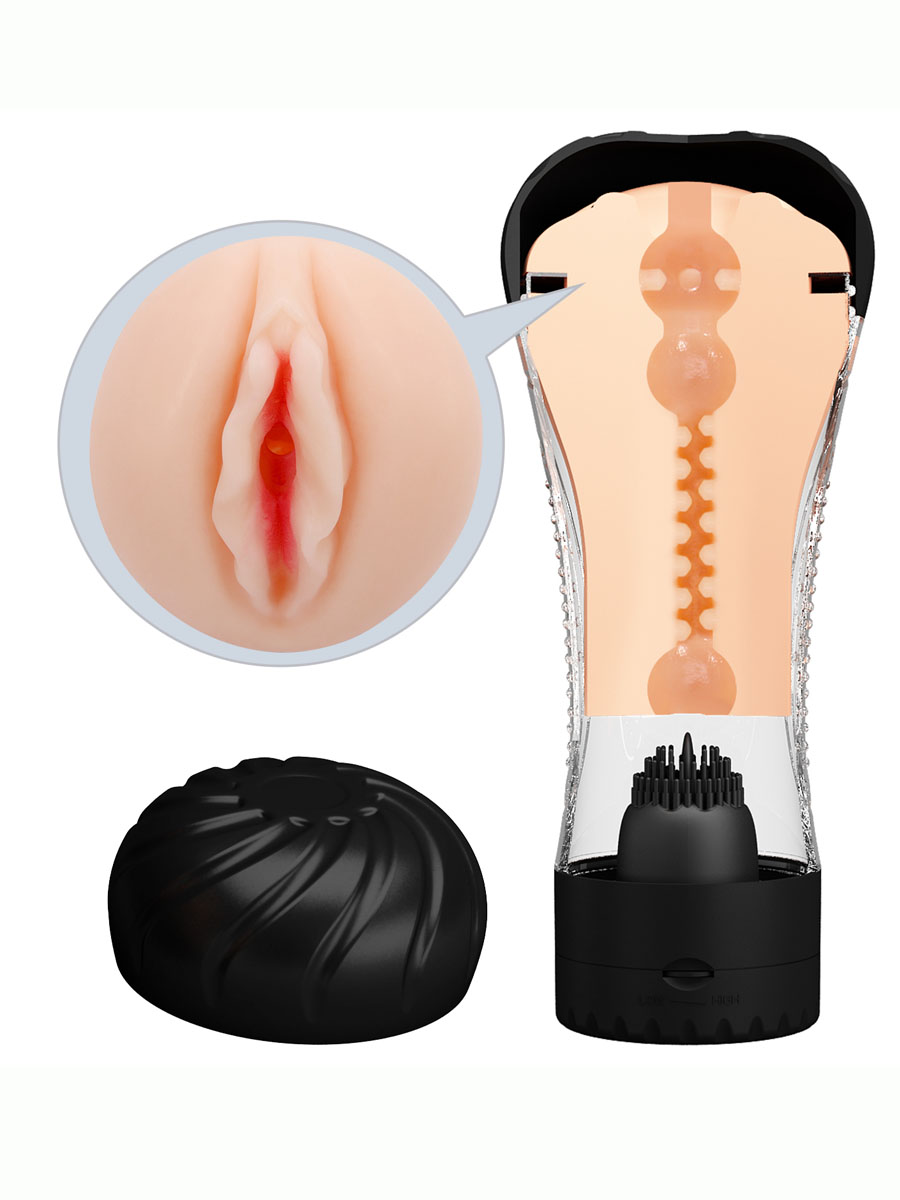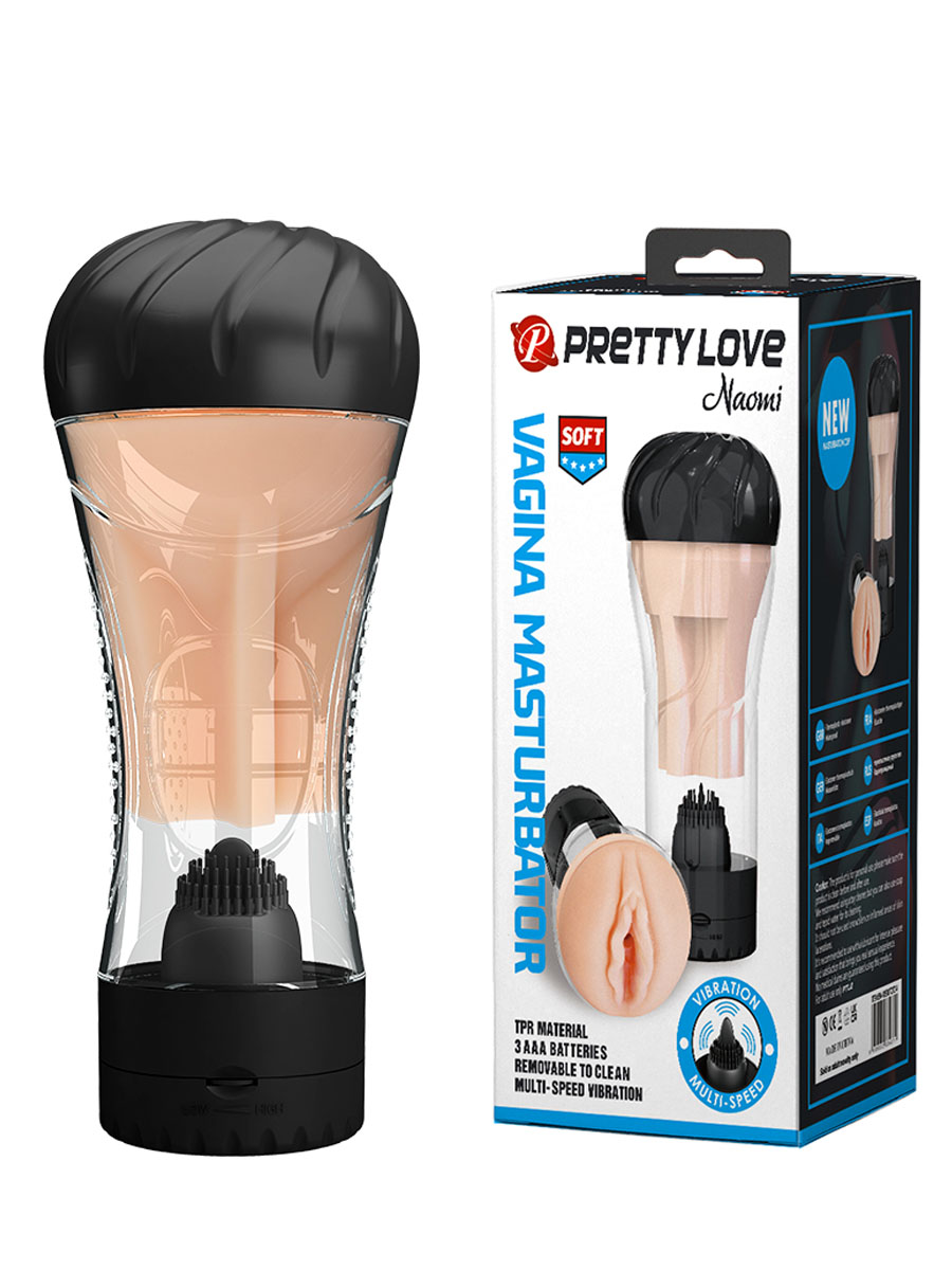 Vibrirajući masturbator od Pretty Love Naomi će brzo podići vašu solo igru na viši nivo. Njegova rebrasta unutrašnja obloga i primamljiva, realistična tekstura stimulisaće vaš penis na realističan način. Nemojte čekati da istražite intenzivne vibracije, i mogućnosti, koje pruža ovaj masturbator. Priuštite sebi mnogo noći ukusno čvrstog, vibrirajućeg zadovoljstva uz ovu vrhunsku igračku. Održavanje je vodom i sapunom. Pokreću ga 3*AAA baterije. Poželjno je uz njega koristiti i lubrikant na vodenoj bazi, koji takodje možete naći u našoj ponudi.