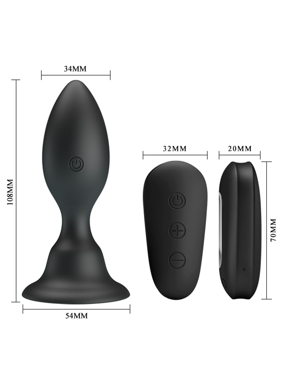 Novi izuzetan analni plag sa daljinskom kontrolom i 12 različitih funkcija vibracije.Snažan motor nudi neverovatna nova uzbuđenja sa mogućnošću korišćenja pod tušem jer je vodootporan,gladak je i napravljen od najkvalitetnijih materijala.Mogućnost memorije vaših omiljenih šablona rada. Dužine 10,8 cm i širine 3,4 cm. Igračka dolazi opremljena USB kablom za brzo i praktično punjenje koje ne zahteva baterije. Održavanje antibakterijskim sapunom i toplom vodom