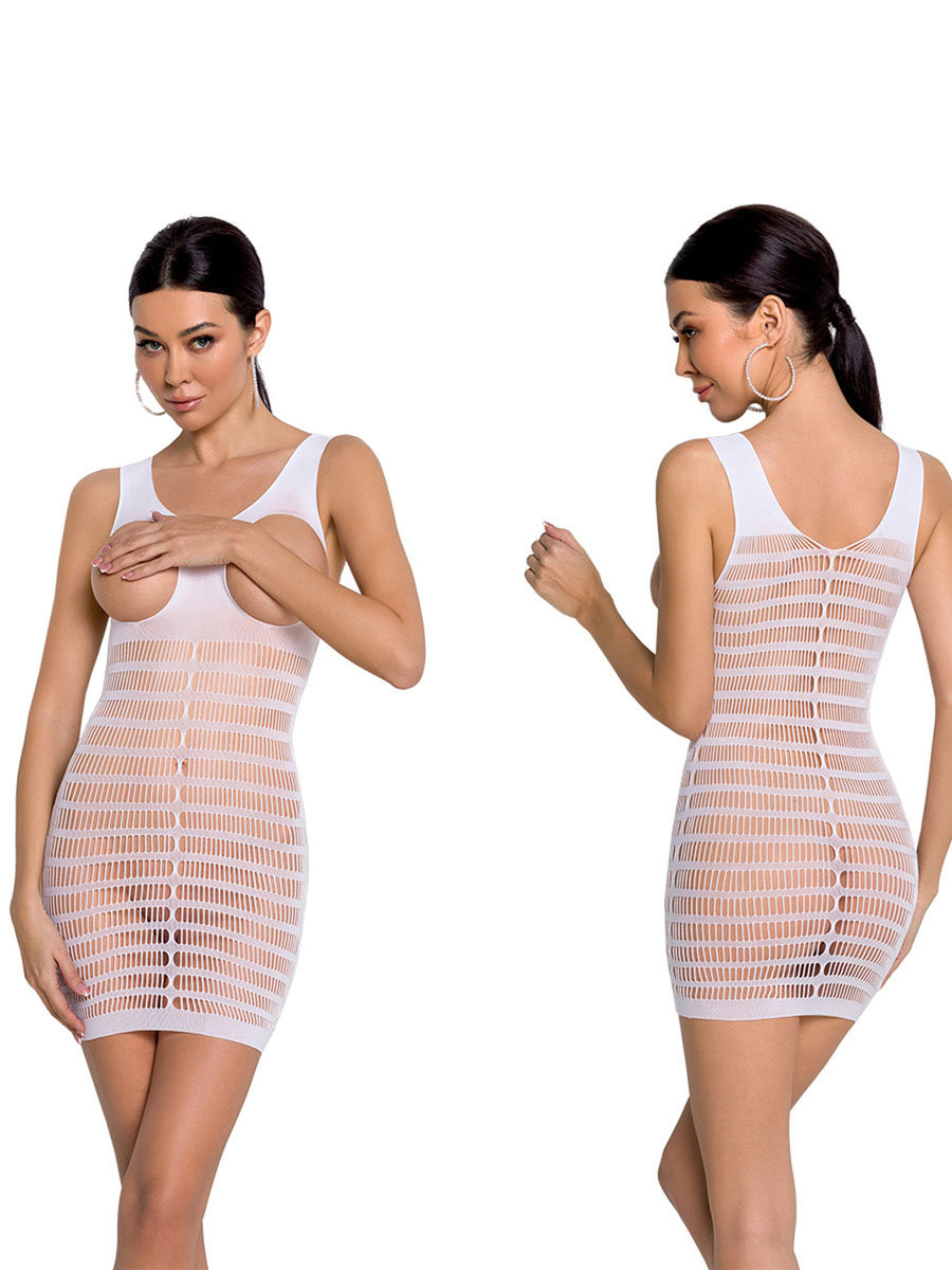 Zanosna mrežasta haljina koja će istaći Vaše atribute i zagolicati maštu partnera. Poseban detalj su izrezi za grudi koji dodatno uzbudjuju!Izrađena je od visokokvalitetnih materijala – 80% poliamid i 20% elastina, obezbeđujući udobnost i rastegljivost koja omogućava da se savršeno prilagodi vašem telu. Univerzalna veličina S-L garantuje da će se savršeno pristajati na svaku figuru.