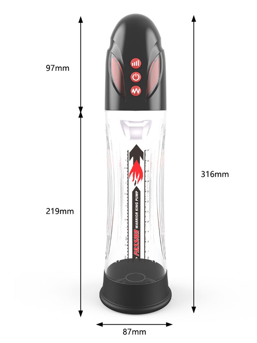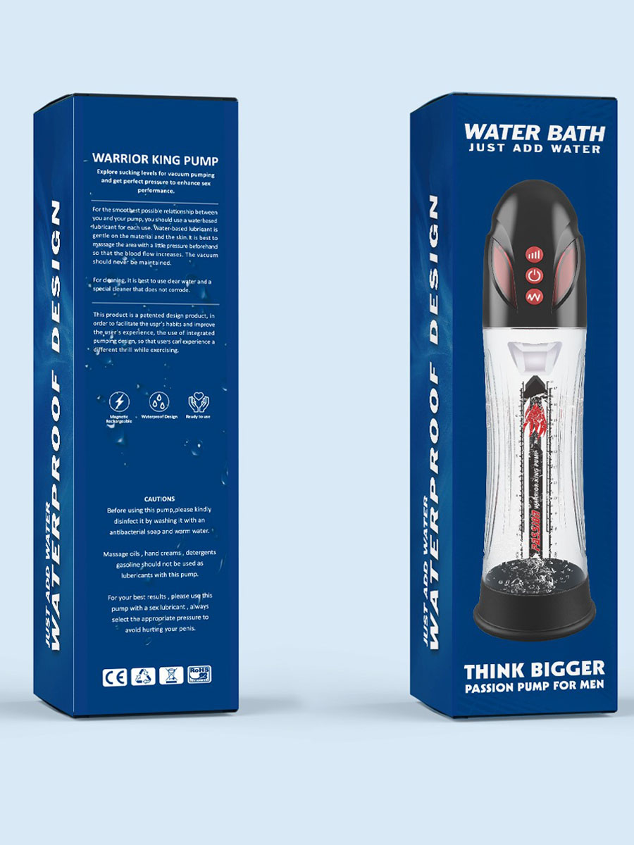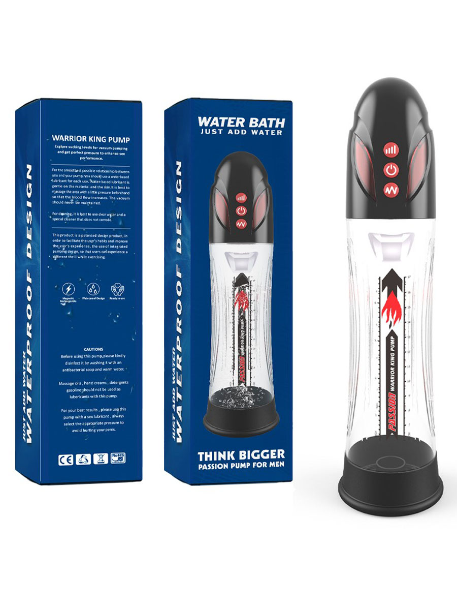 Pumpa za penis sa providnim cilindrom kako biste imali uvid u nivo vode u istom. Pumpa je vodootporna i može se koristiti kako pod vodom tako i van vode. Poseduje najnapredniji dizajn, displej sa četiri nivoa pritiska koji se može regulisati putem komandi na pumpi.