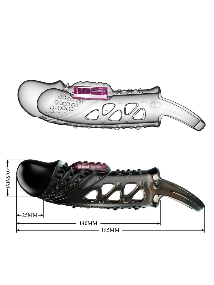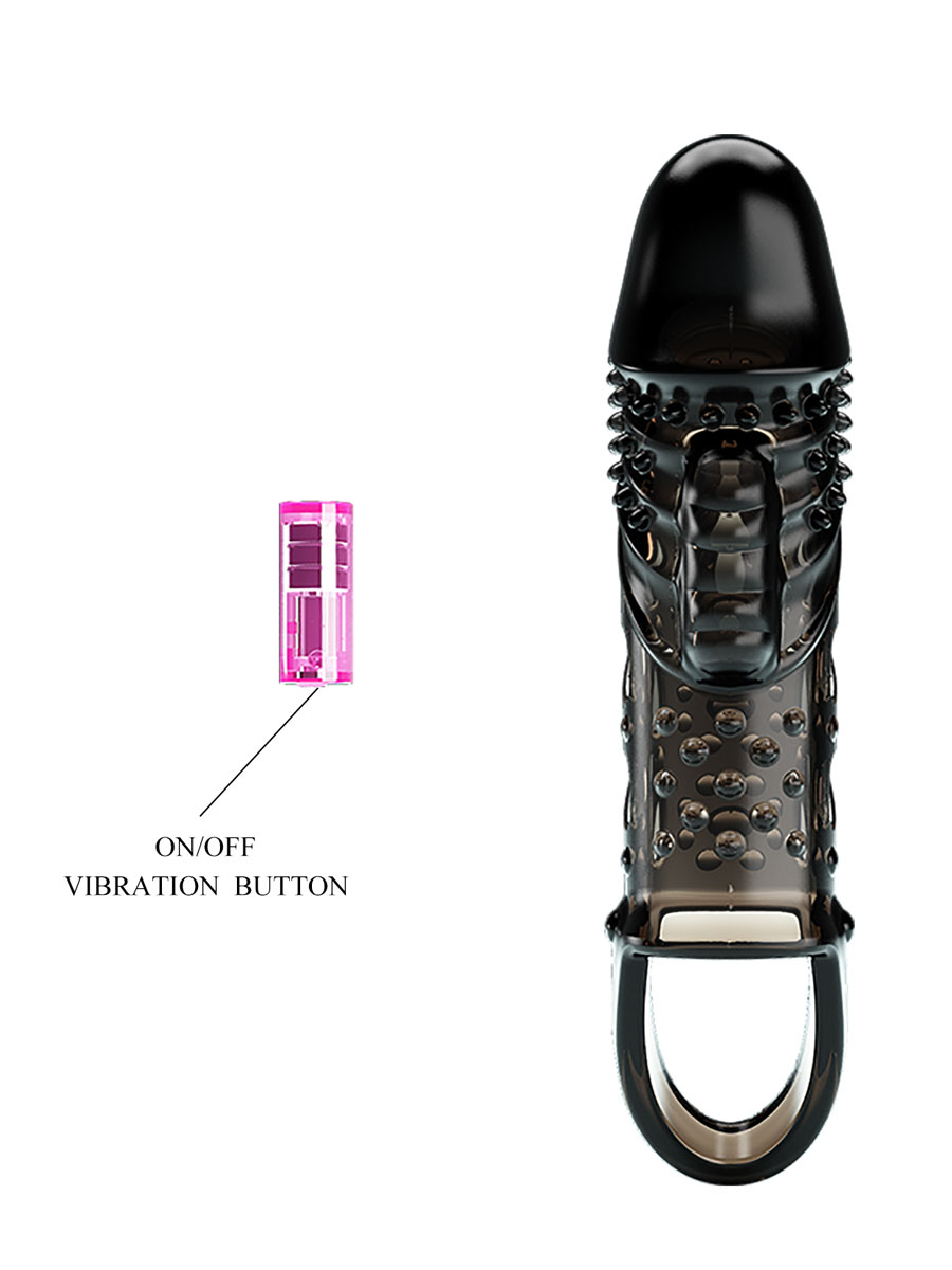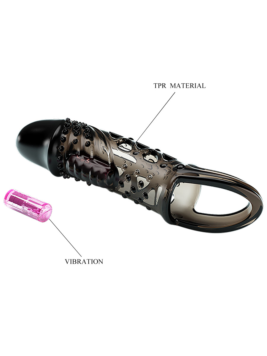 Navlaka za penis napravljena od rastegljivog TPR materijala. Ova navlaka takodje poseduje mogućnost vibracije zahvaljujući vibro metku koji se nalazi u njoj i služi za stimulaciju unutrašnjosti vagine, a sam vibro metak koristi 3 x LR41 baterije. Na dnu navlake sa donje strane je prsten za testise koji će uticati na produženje odnosa. Dužina: 14 cm, Prečnik: 4,5 cm. Preporučujemo upotrebu lubrikanta na vodenoj bazi, da bi penetracija bila maksimalno udobna i prijatna. Za pravilno održavanje potrebno je navlaku oprati toplom vodom i antibakterijskim sapunom.