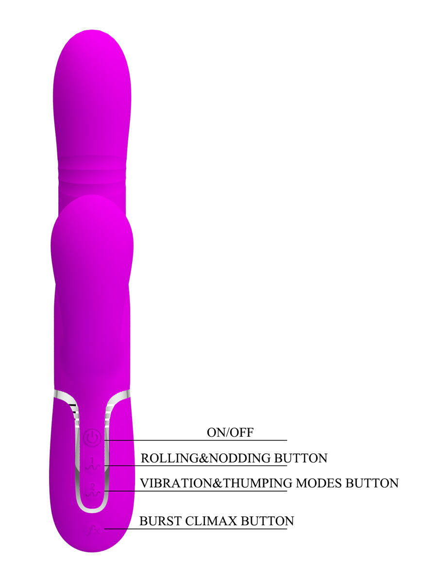 Ovo je savršen vibrator za stimulaciju vagine, G-tačke i klitorisa, onda je ova sexy spravica stvorena za vas.Ovaj sofisticirani vibrator kombinuje stimulaciju sa 7 različitih režima vibracija i 7 različitih modova tapkanja, omogućavajući vam da doživite orgazme za pamćenje. Vibrator je izrađen od kvalitetnog silikona. Tu je i dinamičan sistem pomeranja vrha koji donosi izvanredno uživanje kroz 4 različita moda. Takođe unutar glavne osovine nalaze se rotirajuće kuglice koje možete da kontrolišete sa 4 različita moda. Sve funkcije lako kontrolišete sa dugmićima. Ukupna dužina vibratora iznosi 22.6 cm, dok je penetrirajući deo dugačak 12 cm, sa prečnikom u najširem delu od 3.4 cm, pružajući savršen balans tokom korišćenja.Vibrator se puni preko USB kabla koji se nalazi u pakovanju. Takođe vibrator je potpuno vodootporan omogućavajući vam da istražujete uživanje pod tušom ili u kadi. Preporučujemo korišćenje lubrikanta na vodenoj bazi. Održavanje antibakterijskim sapunom i toplom vodom.