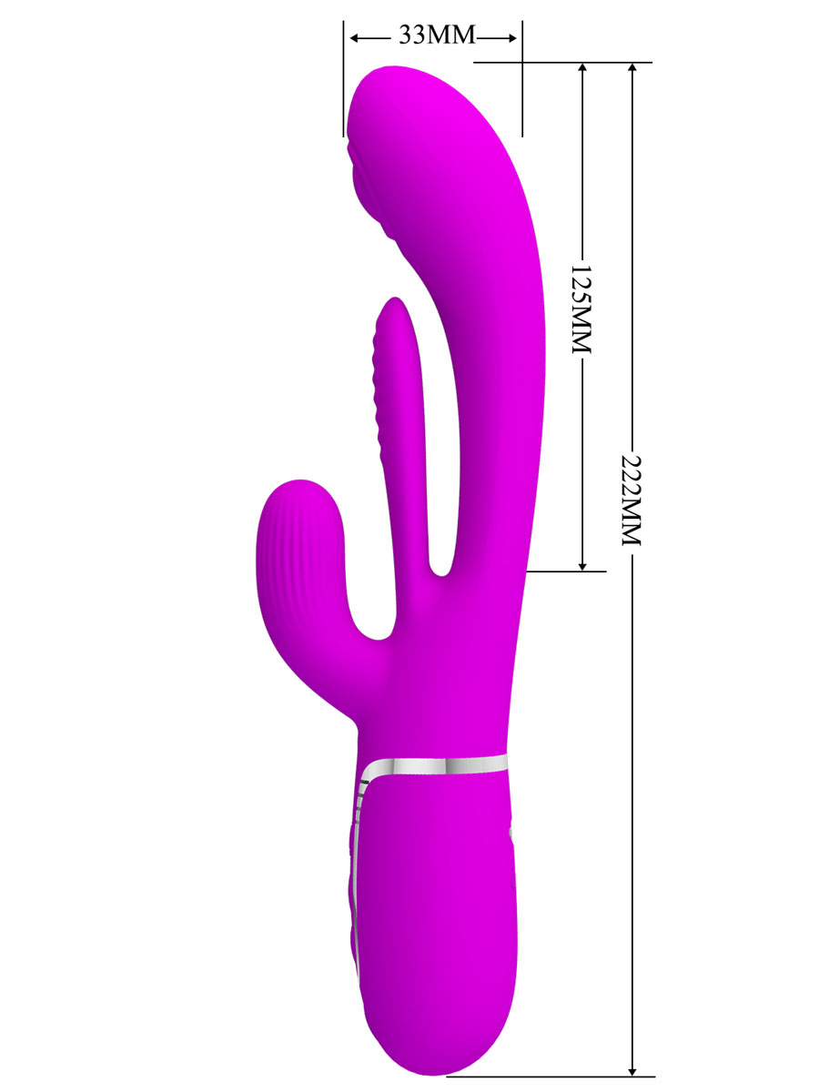 Ovaj jedinstveno teksturirani vibrator sa dodatkom za stimulaciju klitorisa, u obliku zeca pruža zapanjujuće unutrašnje i spoljašnje senzacije. To je lako ostvarivo, sobzirom da vibrator poseduje 7 režima pulsacije i vibracije. Napravljen od visokokvalitetnog baršunastog silikona, koji je potpuno udoban i siguran za upotrebu. Nudi senzualan, svilenkast osećaj koji garantuje potpuno zadovoljstvo tokom cele noći. Vibrator ima 7 režima pulsacije i vibracije, koji pružaju intenzivnu stimulaciju i duboke senzacije,a dodatni jezičak – jedinstven dizajn koji pojačava stimulaciju i pruža višestruke orgazme. Ovaj vibrator je odličan dodatak spavaćoj sobi za parove koji žele intenzivno, senzualno i potpuno zadovoljstvo vibracija. To je savršeno rešenje za one koji traže nezaboravno, senzualno iskustvo. Uz proizvod, dobija se USB kabl,a punjenje se preporučuje preko laptopa. Preporučujemo upotrebu lubrikanta na vodenoj bazi.