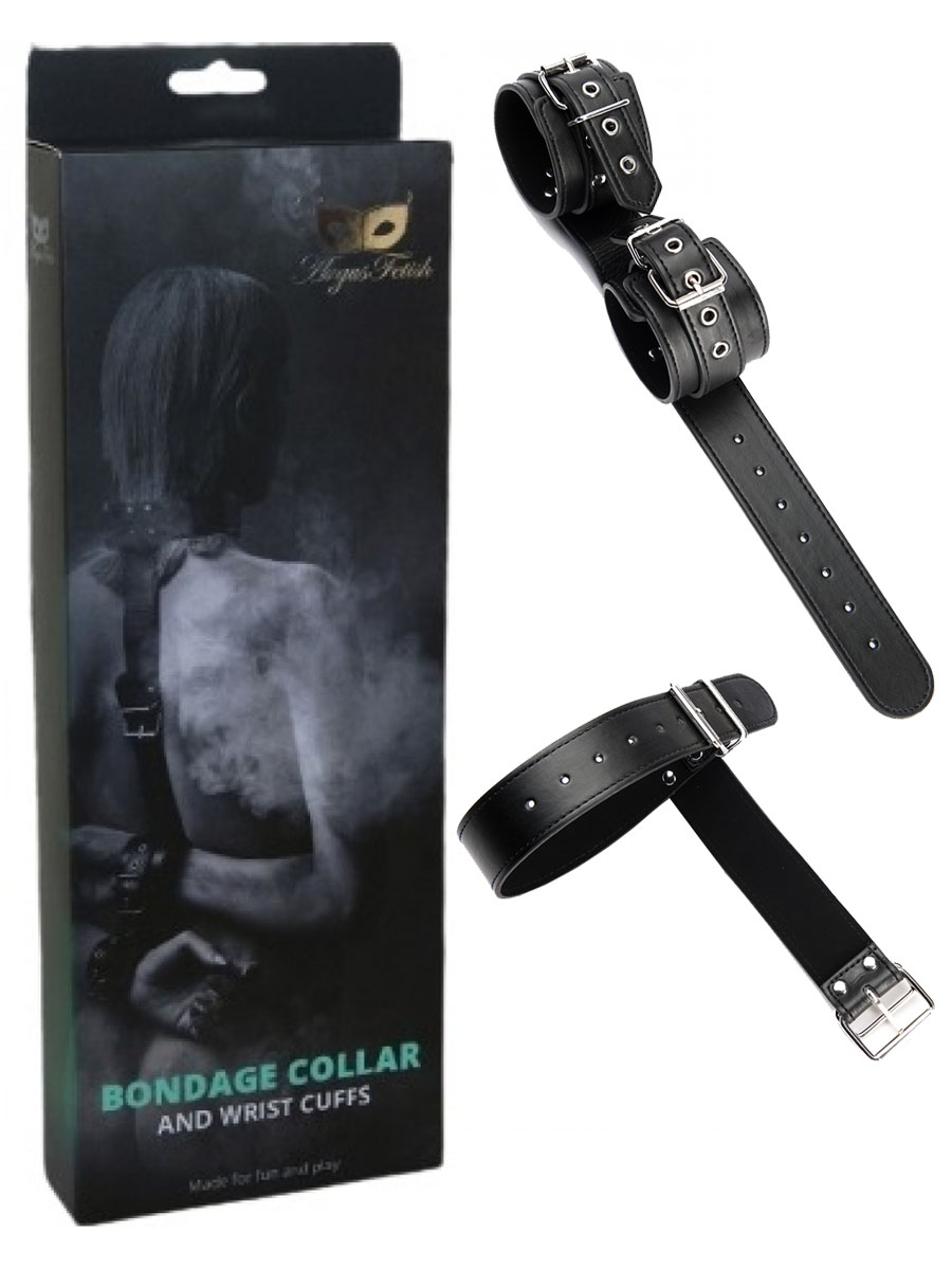Neverovatno kvalitetno uradjen set koji se sastoji od okovratnika i lisica za ruke napravljen je od vestačke kože i potpuno je univerzalan tako da će se lako prilagoditi bilo kome. Preporučljv je kako početnicima tako i iskusnijim osobama baš zato što se jednsotavno postavlja. Sastoji se od dva dela, jedan deo ide oko vrata dok se sa drugim vezuju ruke. Održavanje je veoma lako. Upustite se u novi svet BDSM-a i rasplamsajte strast uz ovaj fantastičan set.