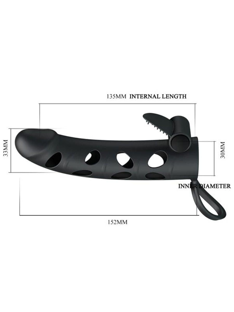 Izuzetno zanimljiva i lepa navlaka za muškarce dužine oko 14cm sa dodatkom za klitoralnu stimulaciju i vibracijom. Lako se navlači i održava i izuzetno je dugotrajna. Može se koristiti sa vodenim lubrikantom. Održava se mlakom vodom i blagom sapunicom. Tačne dimenzije su na jednoj od slika.