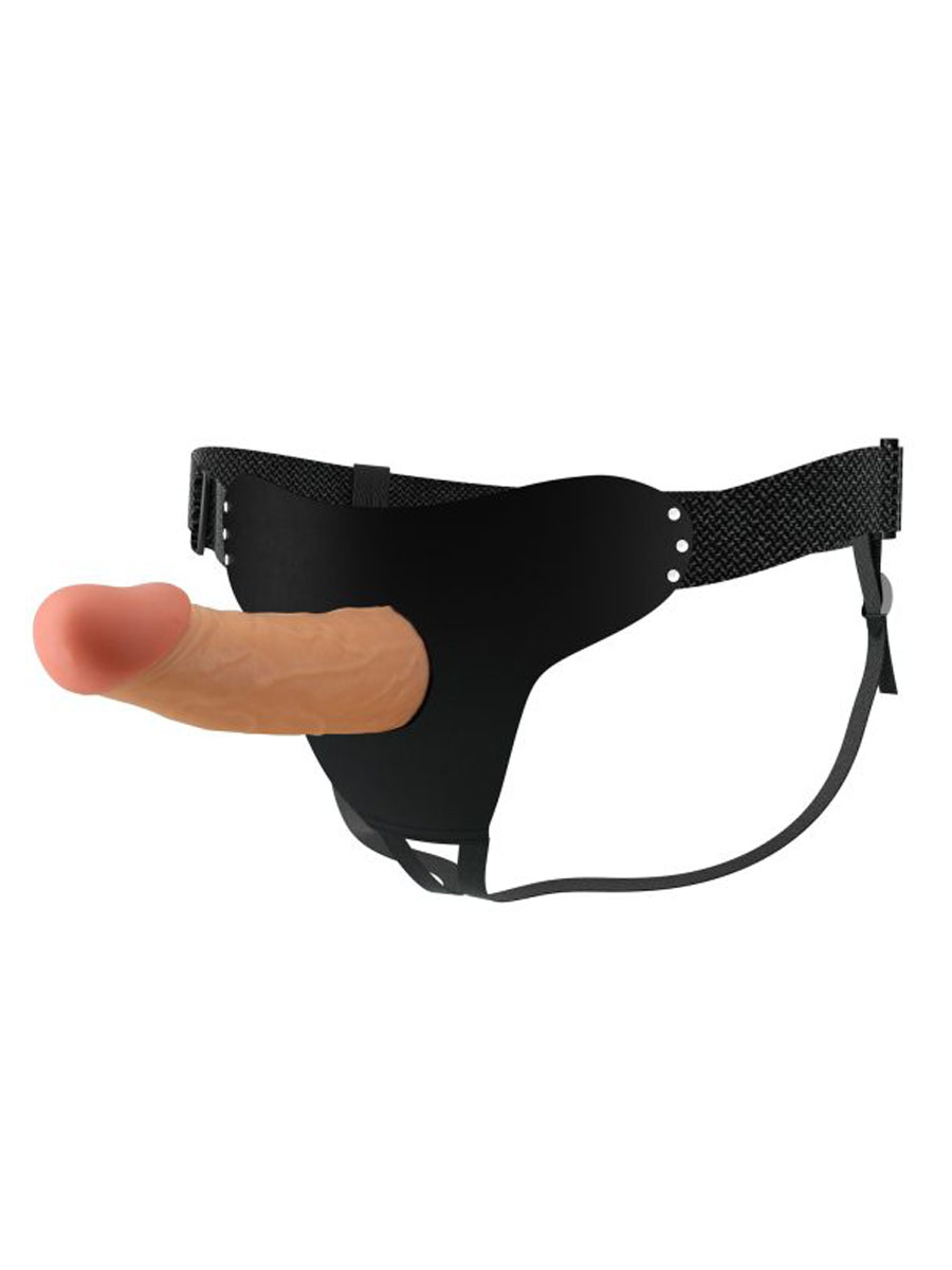 Ovaj savršeni strap-on uključuje dildo sa šupljinom,u koji možete da smestite sopstveni penis, sa izraženim venama za nezaboravno iskustvo stimulacije i penetracije. Podesivi kaiševi obezbeđuju udobno iskustvo i sigurno prianjanje tokom upotrebe. Super mekani TPR glavić pruža dodatnu stimulaciju, a šuplji dildo pruža dodatni centimetar u krevetu i ističe vašu muškost! Ukupna dužina proizvoda je 17.5 cm, prečnik je 4.3 cm,a prazan prostor za penis iznosi 10.5 cm. Preporučujemo upotrebu lubrikanta na vodenoj bazi.