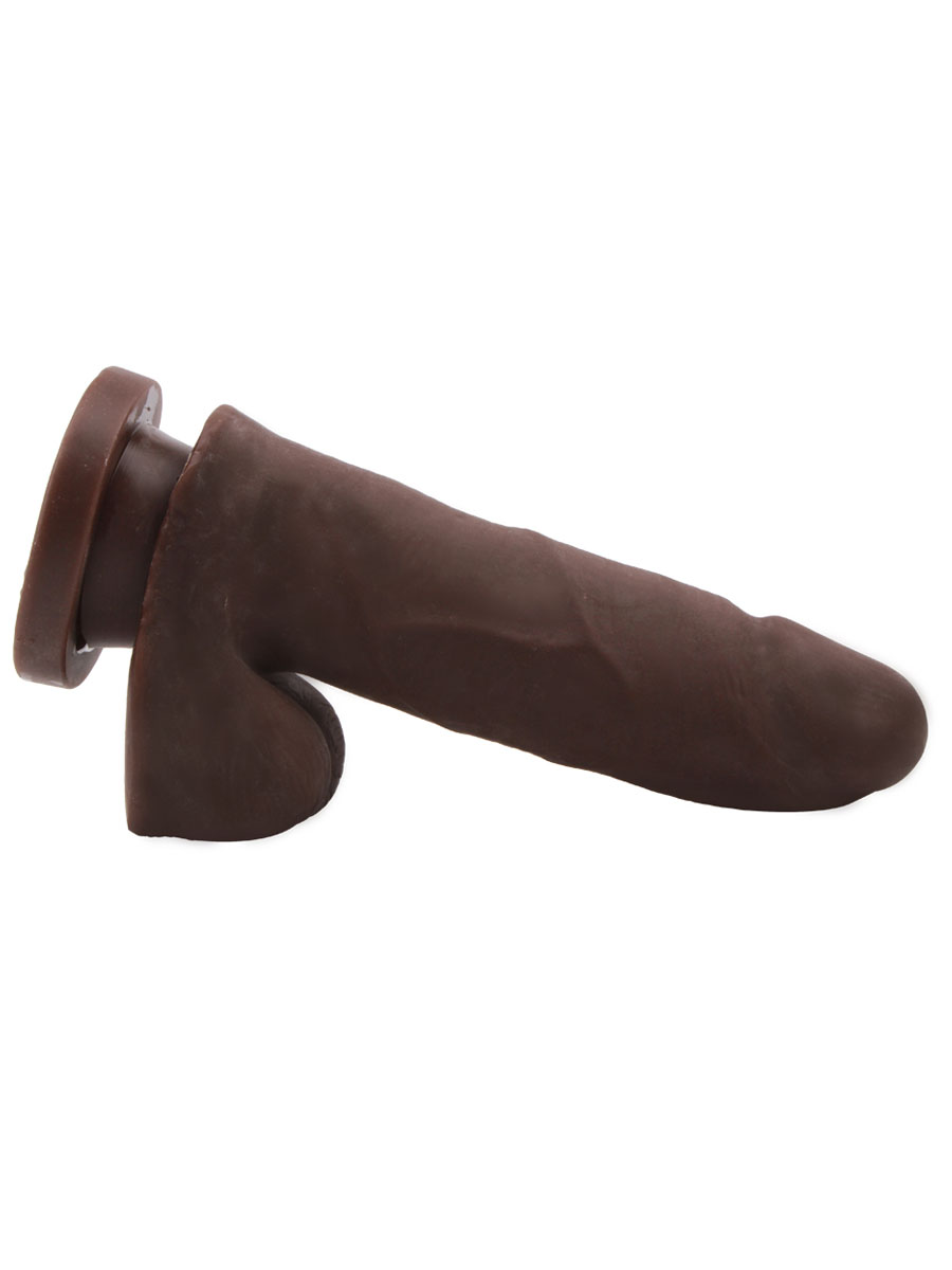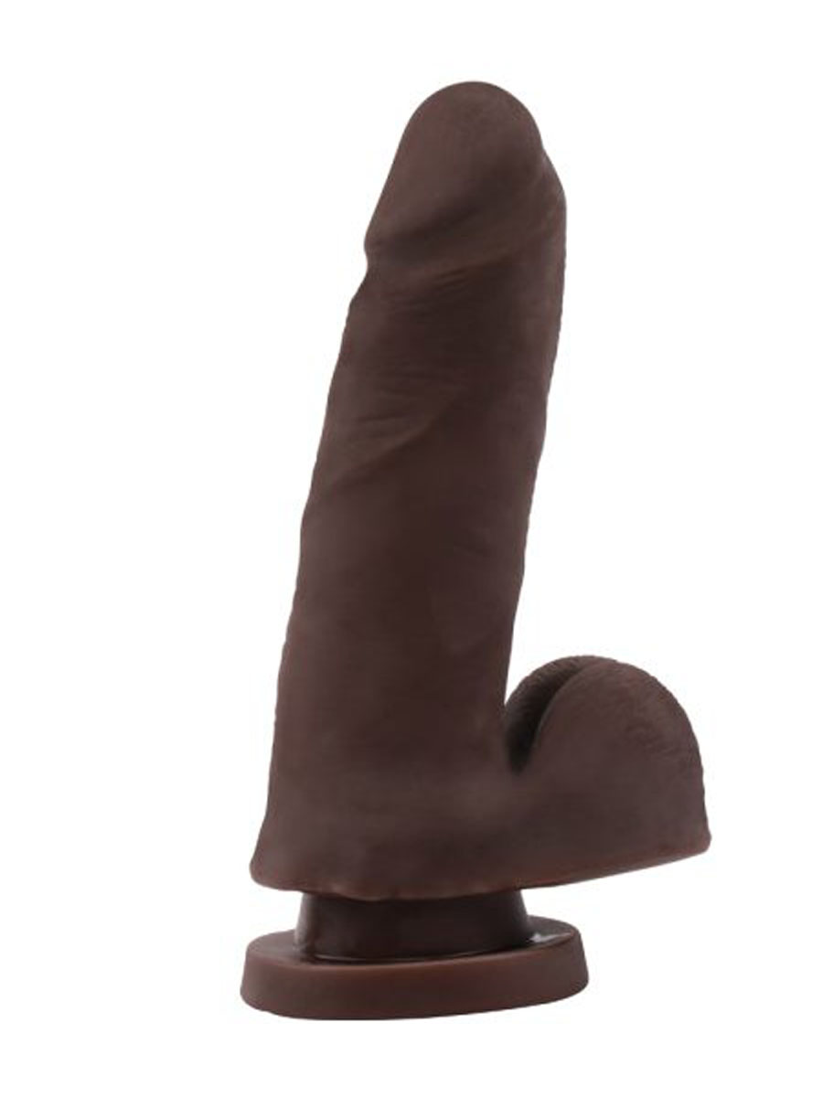 Novi izuzetno realističan i kvalitetan dildo u braon boji sa testisima napravljen od materijala kao prava koža.Ima vakum i može se lepiti na ravnu podlogu.Ukupne dužine oko 14cm i prečnika oko 3 cm.Manji model za svaku preporuku,često se koristiti analno zbog svojih manjih dimenzija.Održava se toplom vodom i sapunom,dezinfikuje klinerom i koristi sa vodenim lubrikantom.