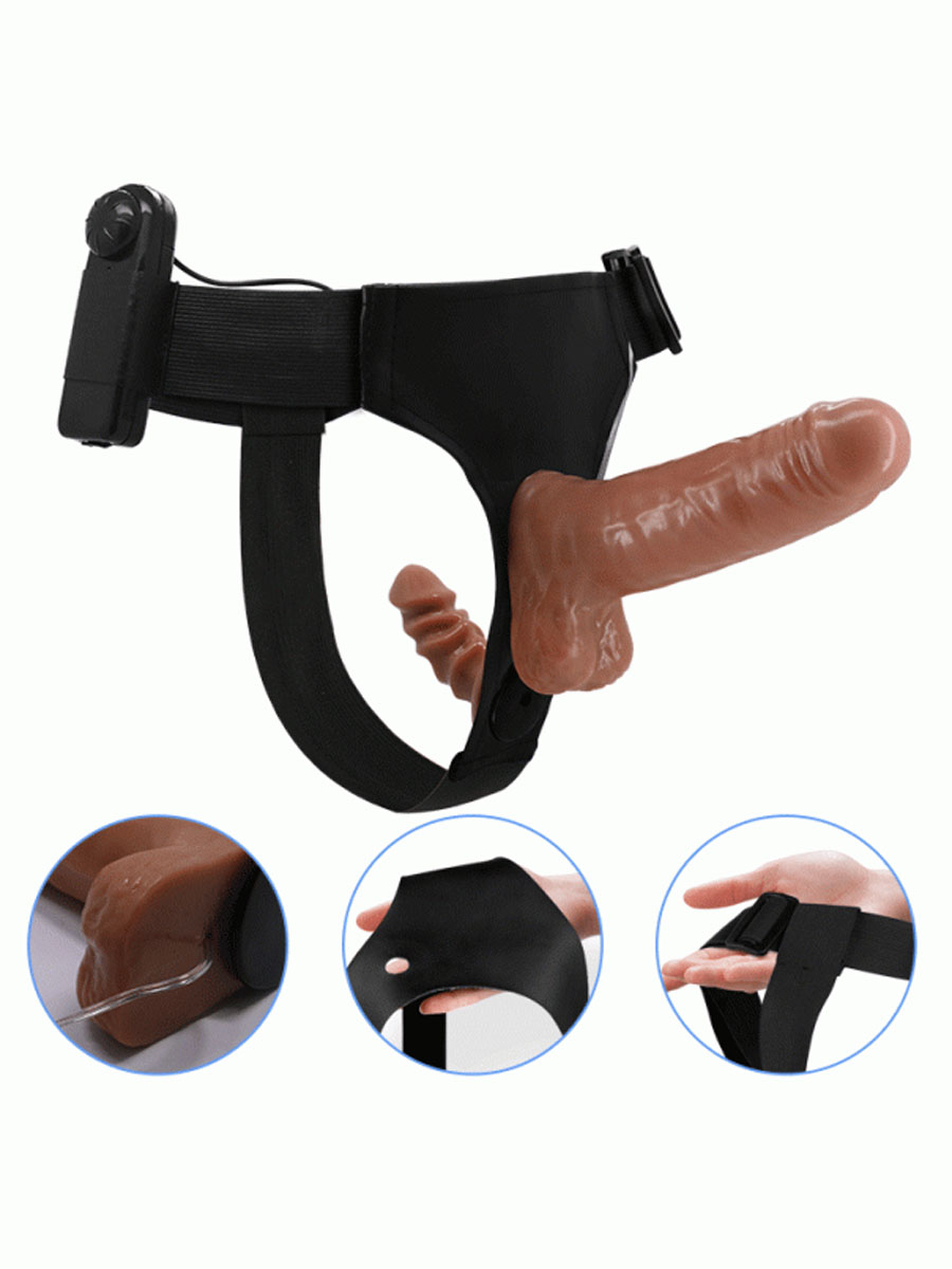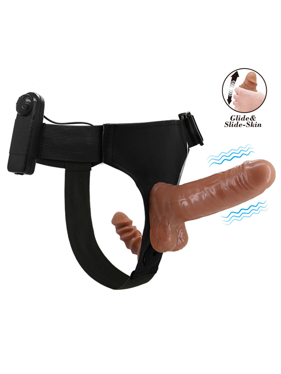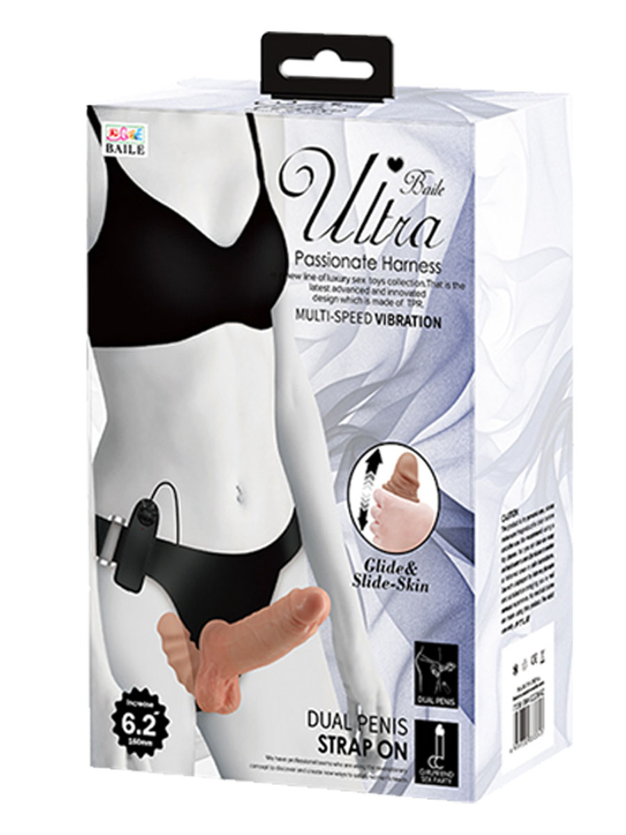 Novi realistični dupli strap on sa vibracijom i odličnim sistemom kaiša za lako prilagođavanje svakom obimu struka.Napravljen je od odličnog materijala ukupne dužine spoljnjeg dela 16cm i prečnika 4cm, a unutrašnjeg 9cm. Oba pričvršćena dilda su napravljena od super mekog TPR materijala sa realističnom kožom, koja je dovoljno čvrsta za penetraciju, ali dovoljno mekana da pruži dobru fleksibilnost..Koristi 2AA baterije i preporučuje se korišćenje sa vodenim lubrikantom.