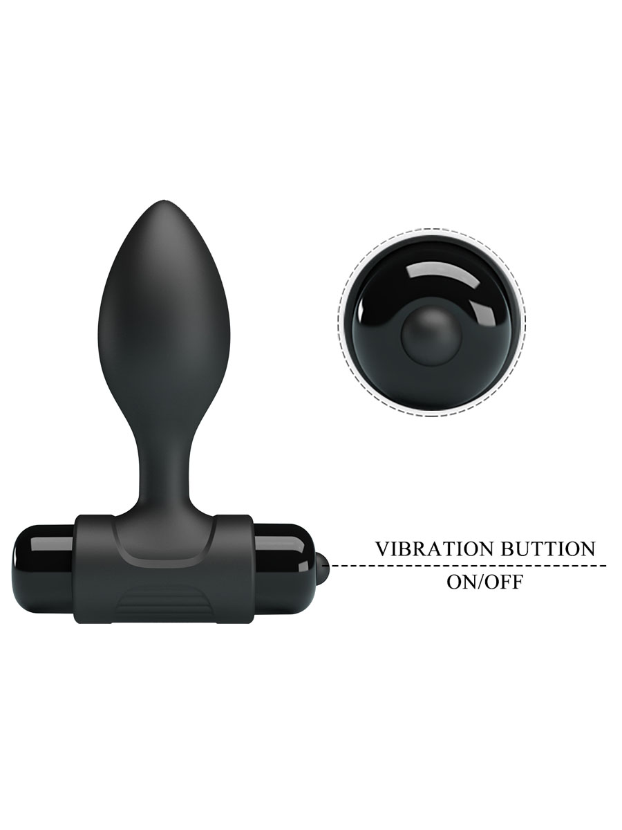 Analni vibro butt plug idealan i za početnike ali i za nešto iskusnije korisnike. Napravljen je od silikona koji je veoma prijatan na dodir. Poseduje 10 različitih vibracija koje menjate pritiskom na dugme. Ukupna dužina ove sexy igračke je 8,6 cm dok je prečnik 2,7 cm a za rad vam je potrebna 1 AAA baterija. Za lakšu penetraciju preporučuje se analni lubrikanti na bazi vode. Održavanje antibakterijskim sapunom i toplom vodom.